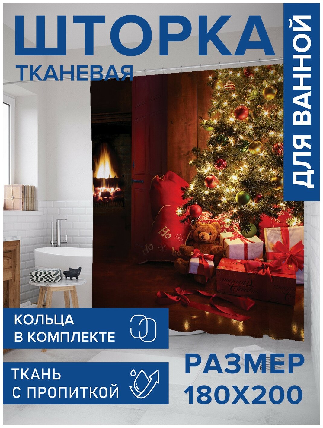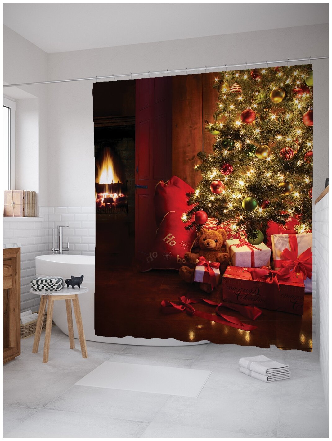 Шторка-занавеска для ванной JOYARTY Штора занавеска для ванной Праздничный уют из сатена 180х200 см с крючками