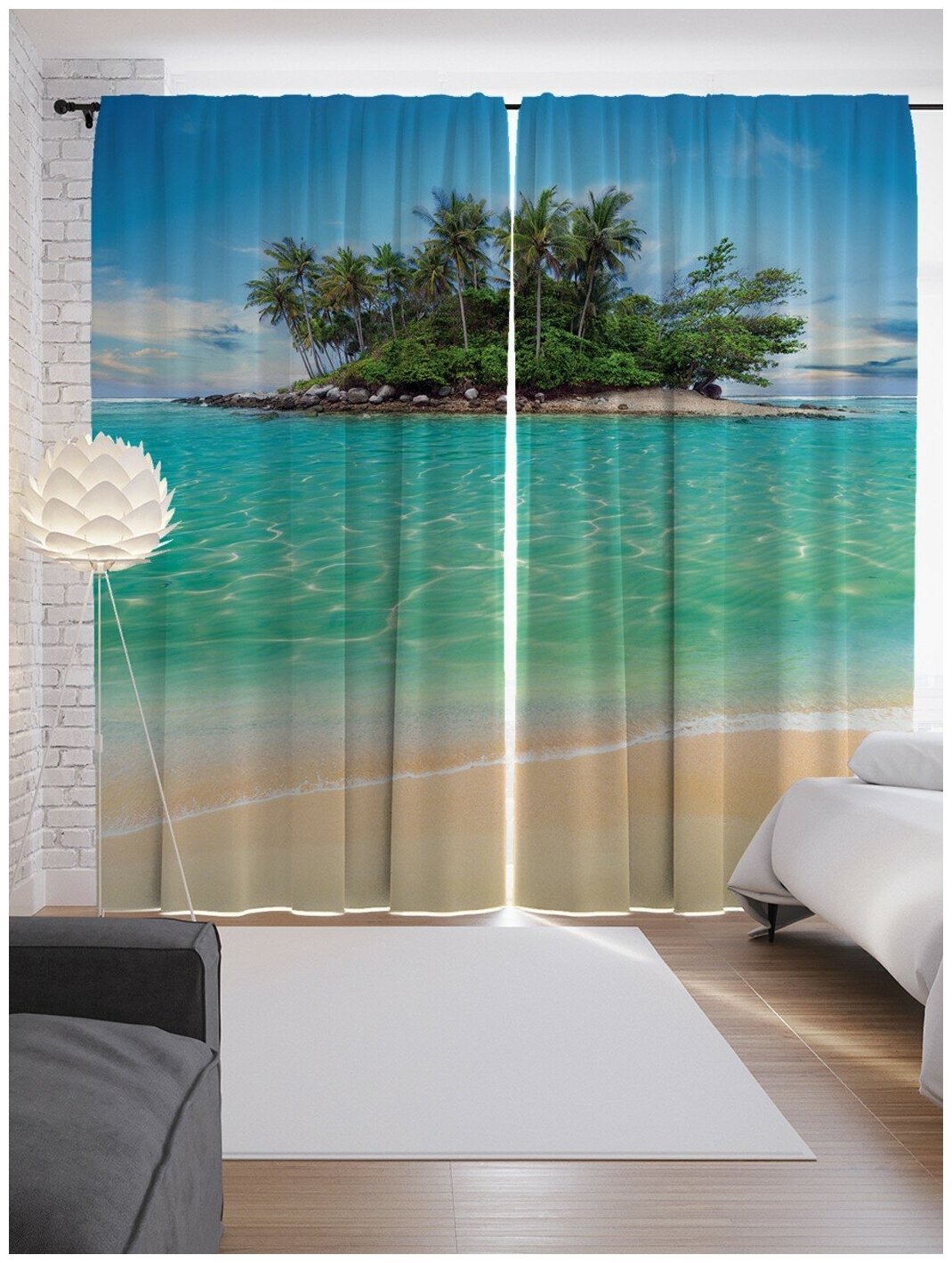 Шторы с фотопечатью "Остров свободы" из сатена 290х265 см JoyArty Шторы с фотопечатью Остров свободы из сатена 290х265 см