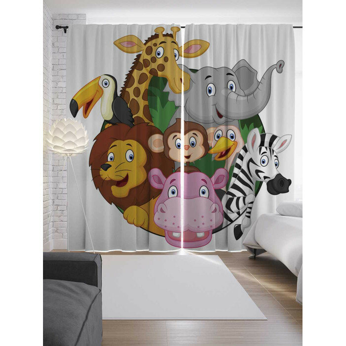 Шторы с фотопечатью JoyArty «Зверюшки встретились» из сатена 290х265 см Шторы с фотопечатью Зверюшки встретились из сатена 290х265 см