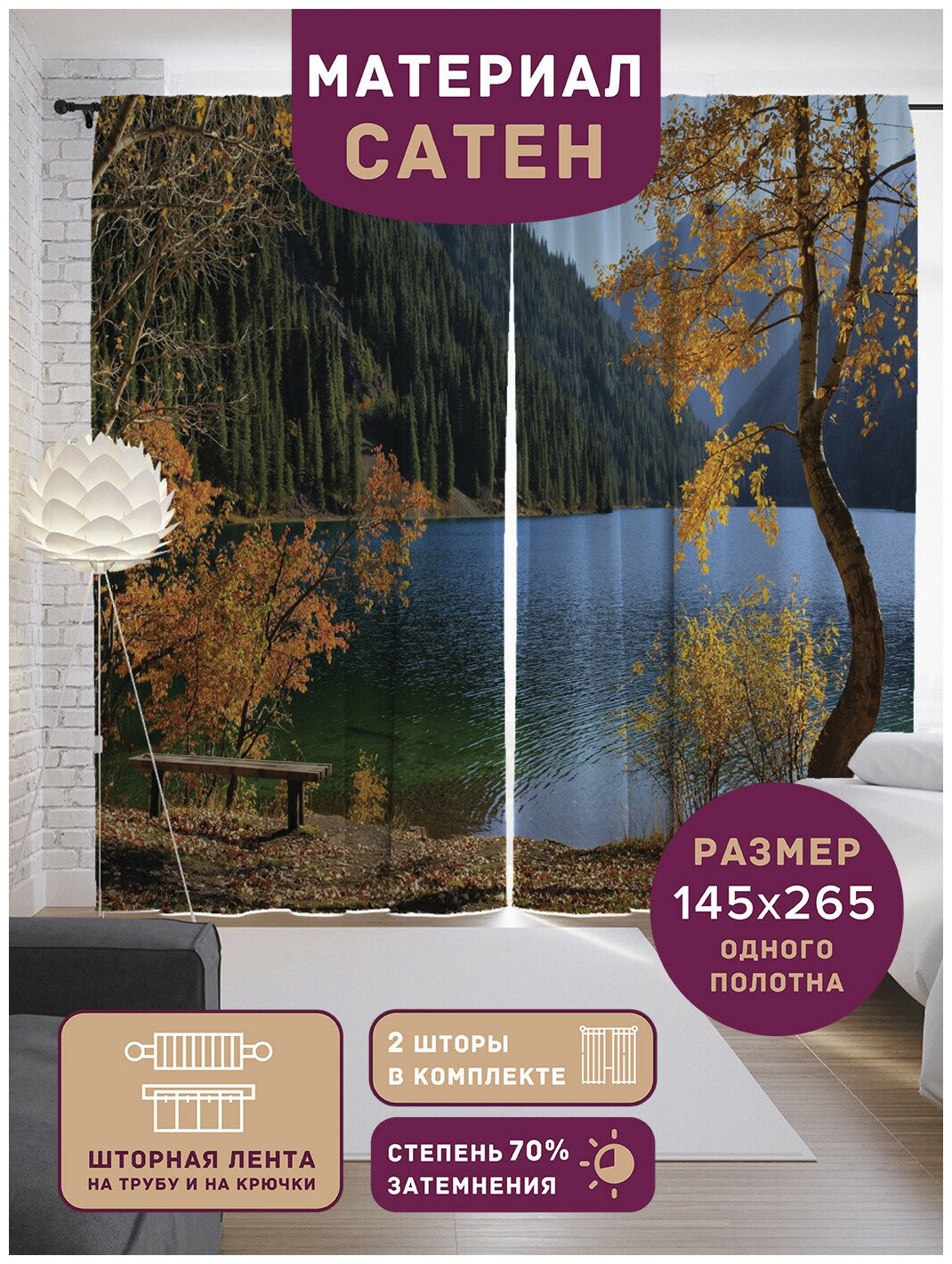 Модель: Шторы с фотопечатью Неожиданное место отдыха из сатена 290х265 см