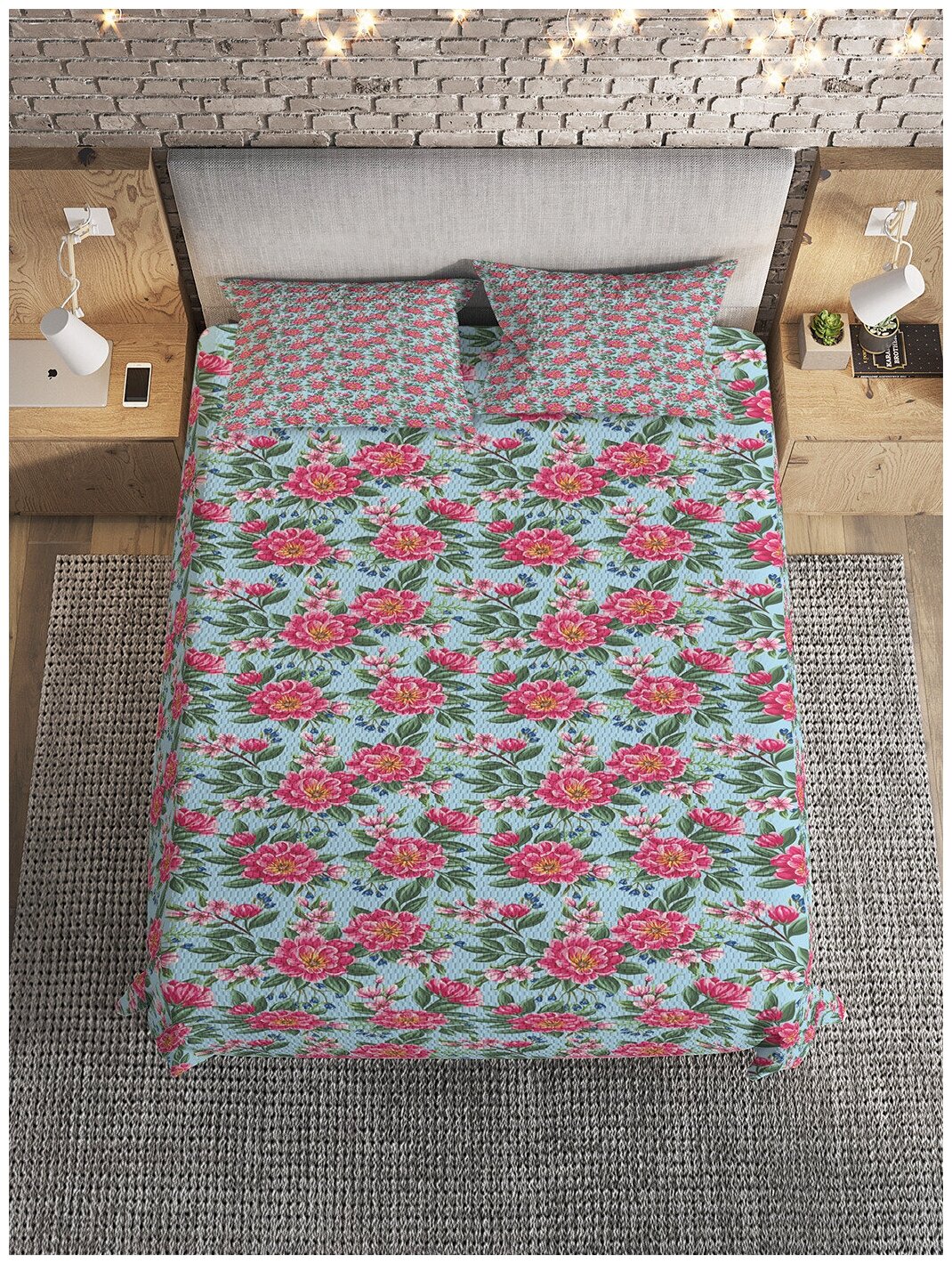 Покрывало Ambesonne 160х220 см с 2 наволочками 50x70 см Покрывало стеганое Пестрые малиновые цветы 220х160 и две наволочки 70х50 (размер: 2-спальный)
