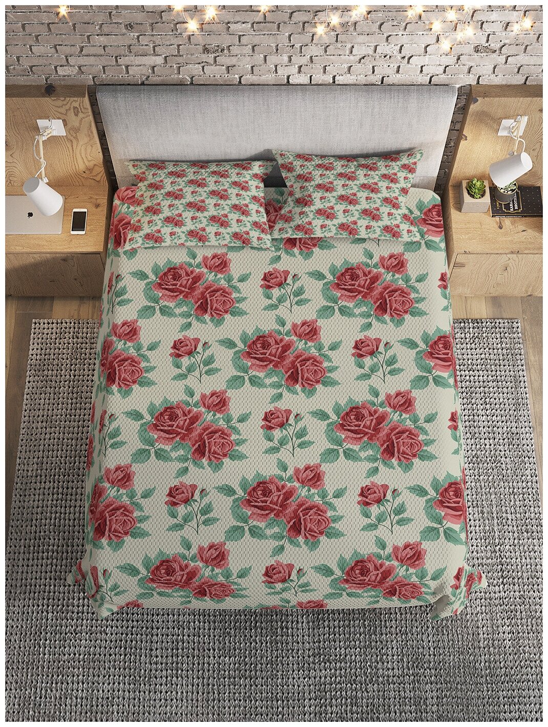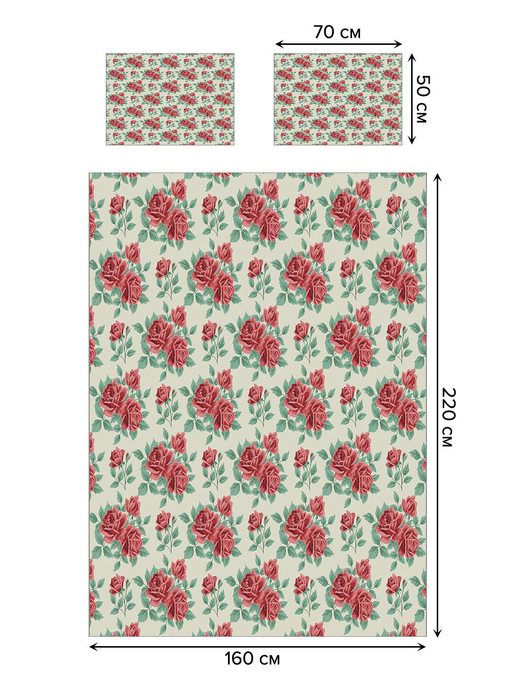 Модель: Покрывало стеганое Нежные красные розы 220х160 и две наволочки 70х50