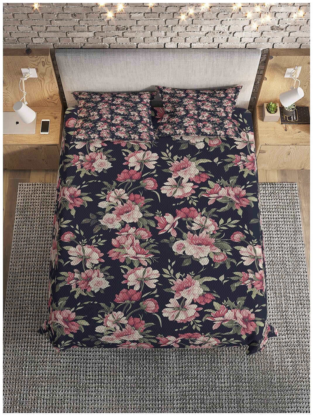 Покрывало Ambesonne 220х235 см с 2 наволочками 50x70 см Покрывало стеганое Большие розовые цветы 235x220 и две наволочки 70х50 (размер: 150х180-220)