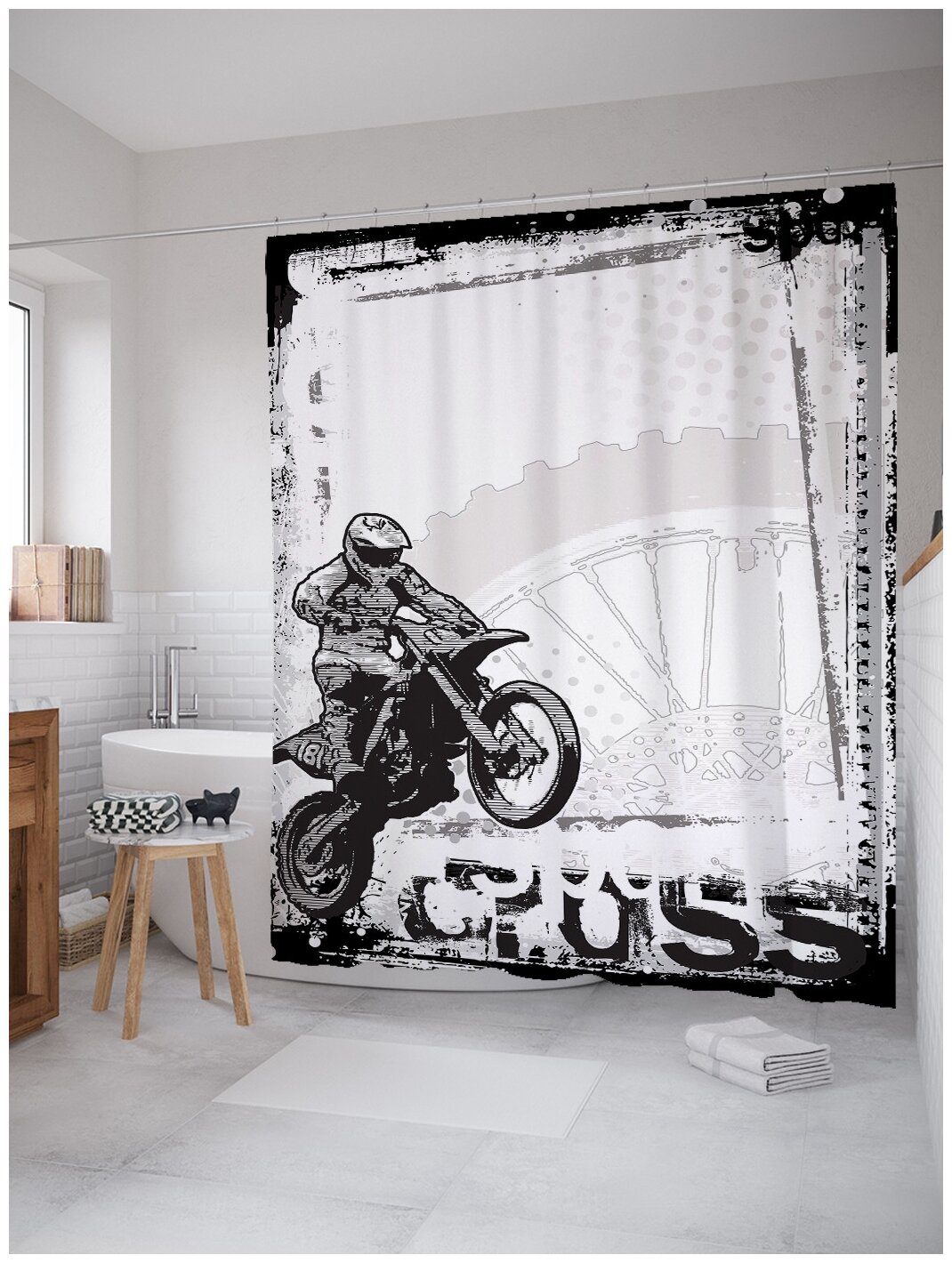 Сервис сравнения цен СкидкаГИД предлагает сравнить цены на товар «Шторка-занавеска для ванной JOYARTY Штора для ванной Мотоциклист трюкач 180х200 см»