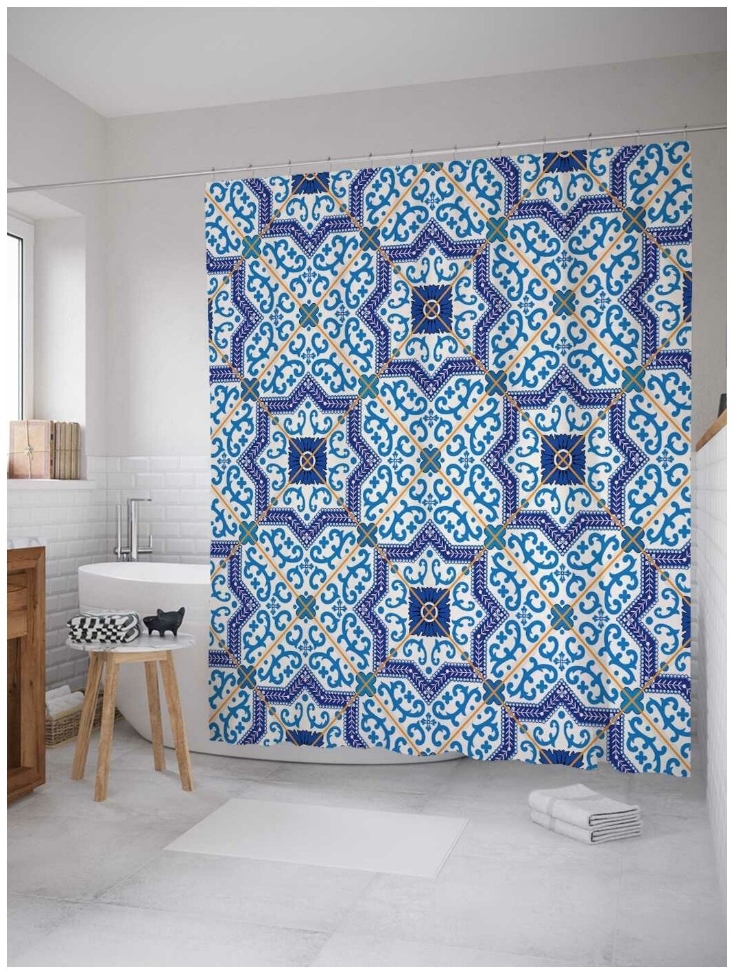 Шторка-занавеска для ванной JOYARTY Штора для ванной Собранный узор 180х200 см