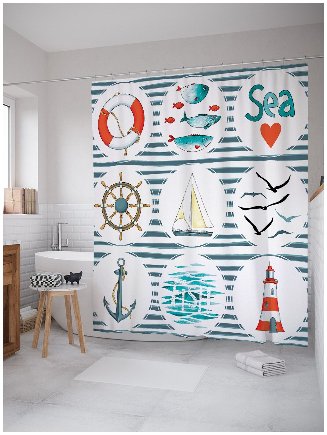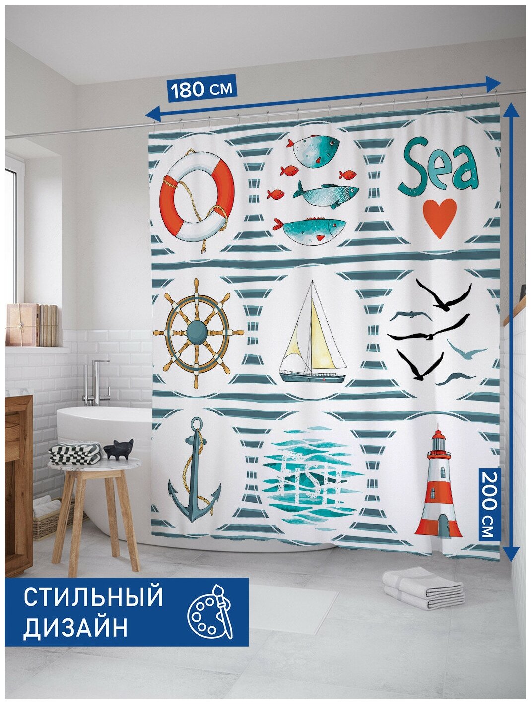 Шторка-занавеска для ванной JOYARTY Штора для ванной Морские символы 180х200 см