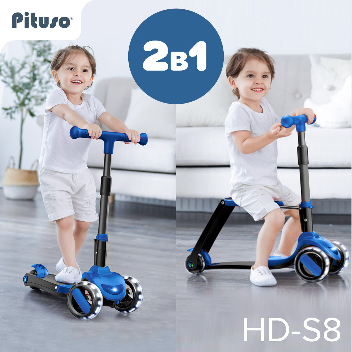 Самокат Pituso HD-S8 2 в 1 (самокат и беговел). Самокат легко трансформируется в беговел, легко и просто раскладывается сиденье.