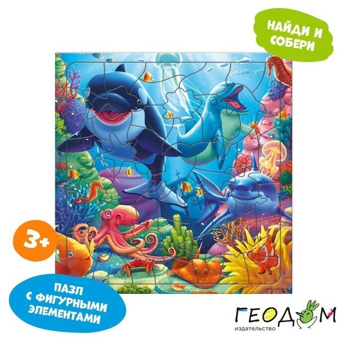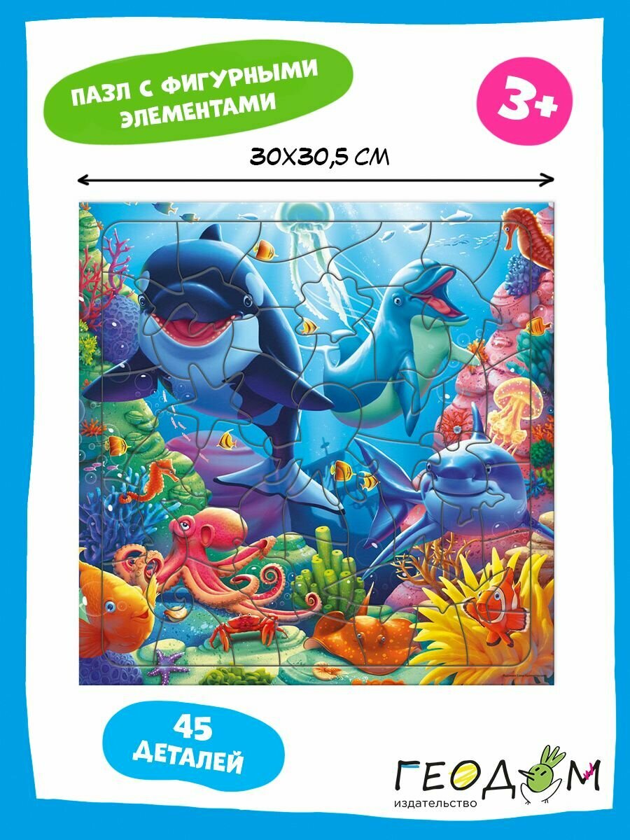 Пазл. В океане. 45 деталей Геодом фигурный на подложке 45 элементов, В океане, 30х30,5 см