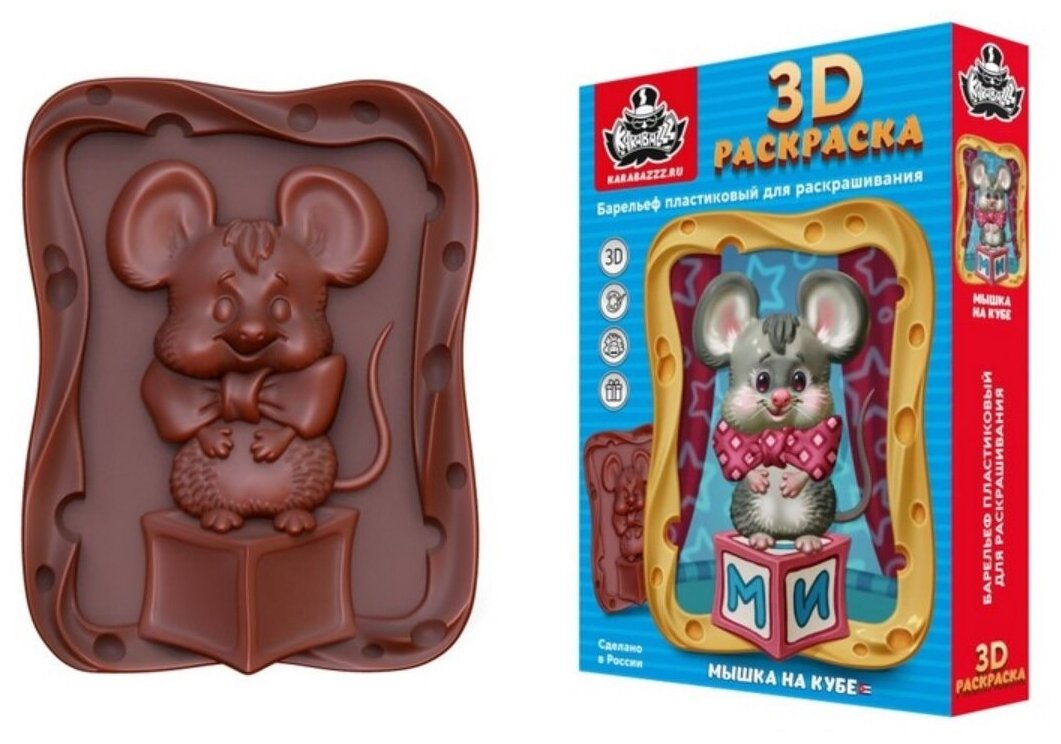3D раскраска "МЫШКА НА КУБЕ" 25см*35KB 002 Karabazzz