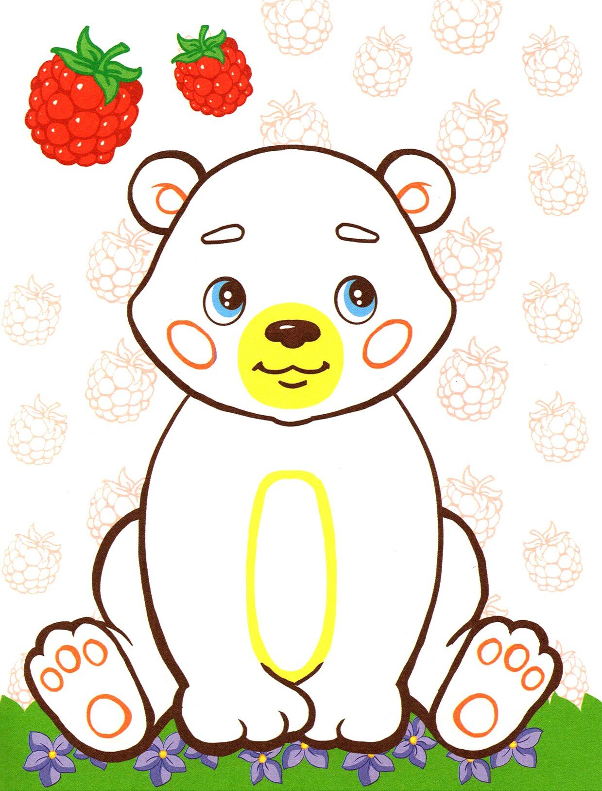 Яркие образцы и цветные контуры подскажут малышу, какой цвет выбрать для раскраски каждого элемента.