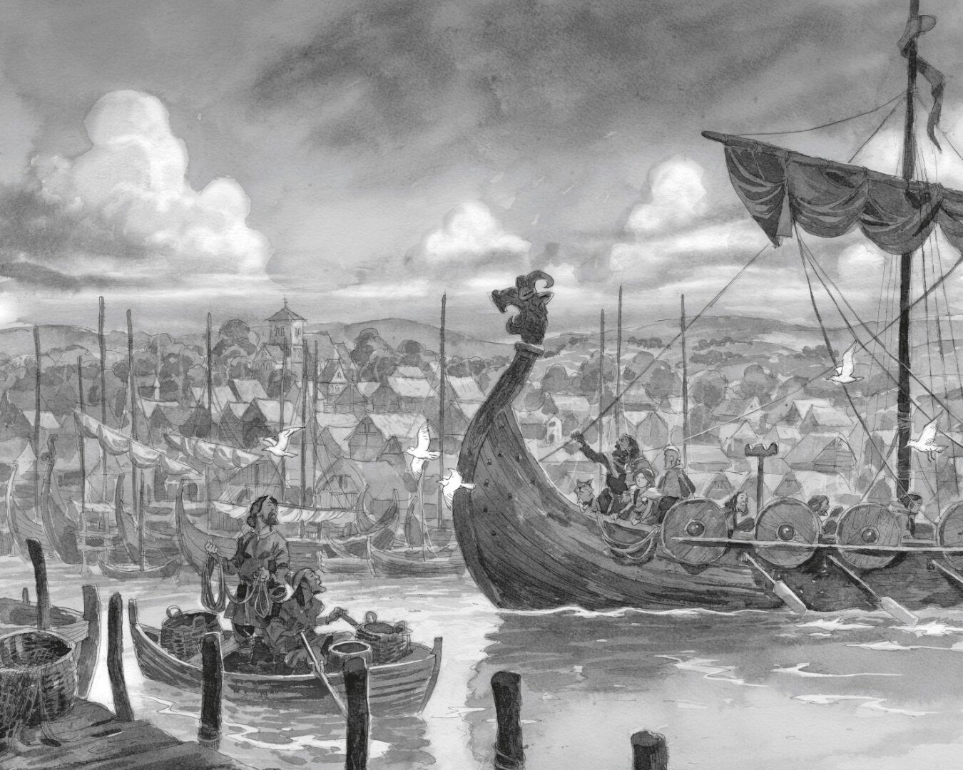 Юные читатели, любящие историю, будут в восторге от этой приключенческой саги с викингами об открытом море, суровых королях и невероятной фигуре одной из величайших и, к сожалению, забытых женщин-правительниц Англии — Этельфледе, Леди Мерсии. Насыщенная историческими подробностями и прекрасно иллюстрированная Дэвидом Уайеттом (в хорошем смысле угрюмые и угрожающие работы отлично передают сильное чувство опасности и атмосферу в целом), это увлекательное и прямолинейное приключение о сильной девушке и еще более сильной женщине в иногда жестоком мире, которое невозможно предсказать. Можно многое узнать об истории и викингах, но читать совсем не сложно, что не всегда бывает с исторической фантастикой для детей.