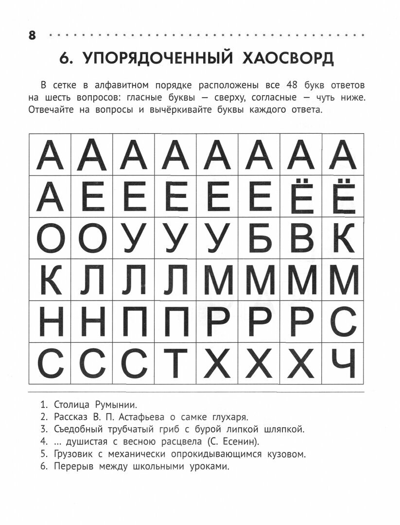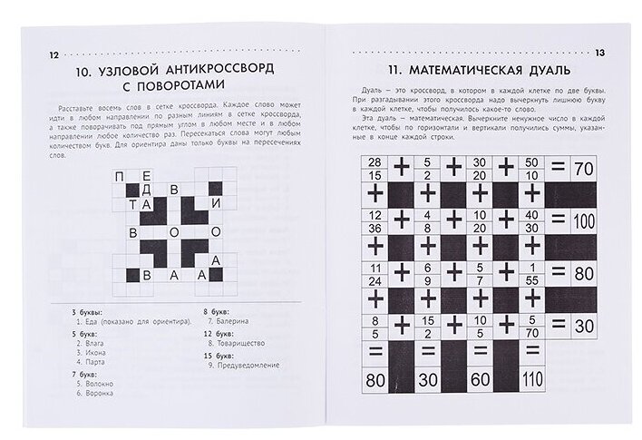Перед вами чудесный сборник кроссвордов и других задач со словами и буквами, а также с числами и геометрическими фигурами для детей 8-9 лет.