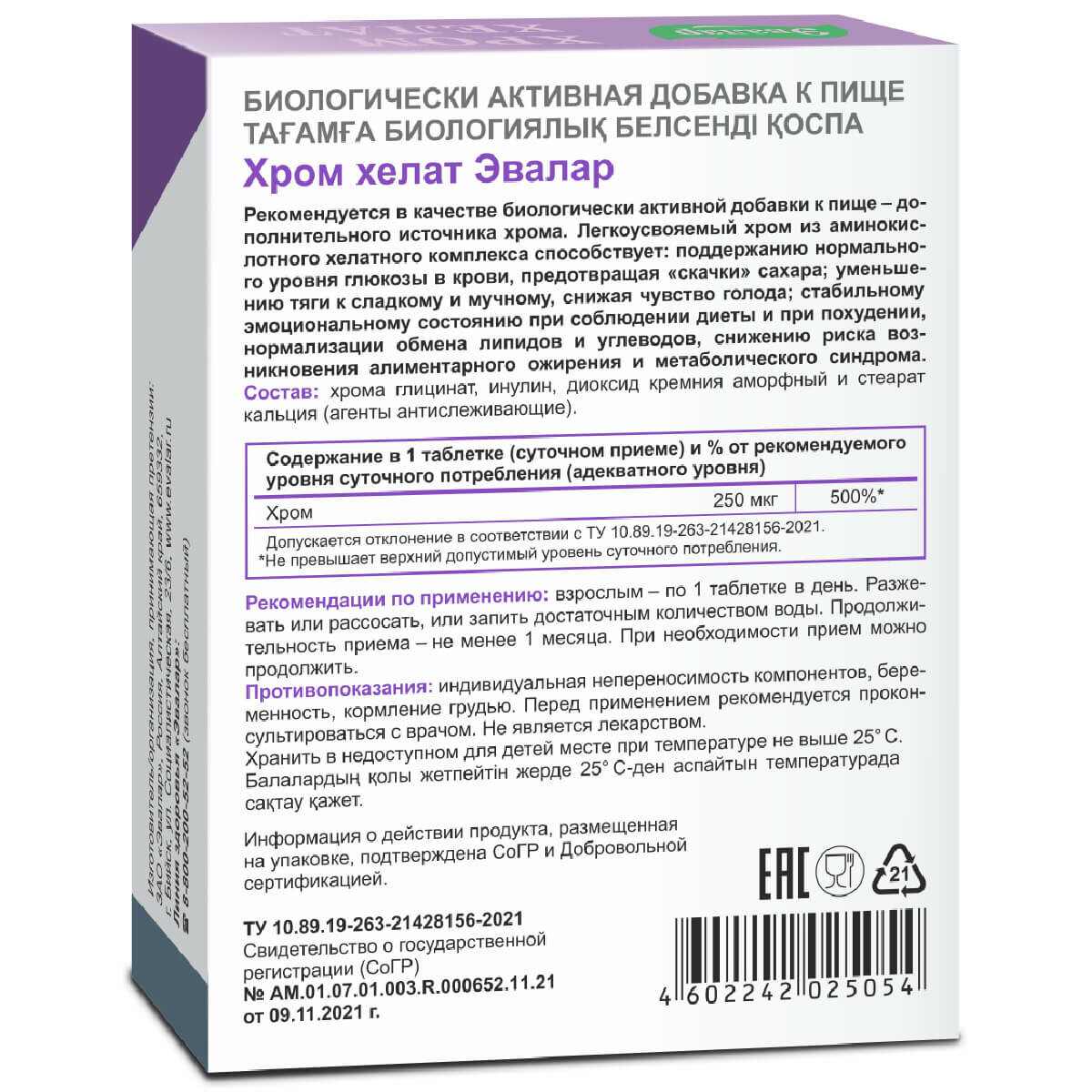 | Торговое наименование | Хром Хелат Эвалар |