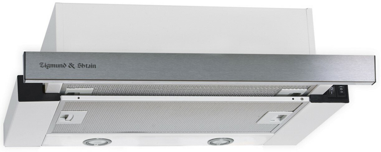 Встраиваемая вытяжка с выдвижным экраном «Zigmund Shtain » имеет ширину всего 45 см, что редко можно встретить у других производителей вытяжек. Следовательно эту модель можно устанавливать в шкаф шириной от 45 см и она подойдет для небольших кухонь. Удобное управление и производительность 550 м?/час, сделают эту модель отличным помощником на Вашей кухне. Вытяжка способна работать в двух режимах: отвод в вентиляцию и рециркуляция (через угольные фильтры). Фронтальная панель выполнена в нержавеющей стали.