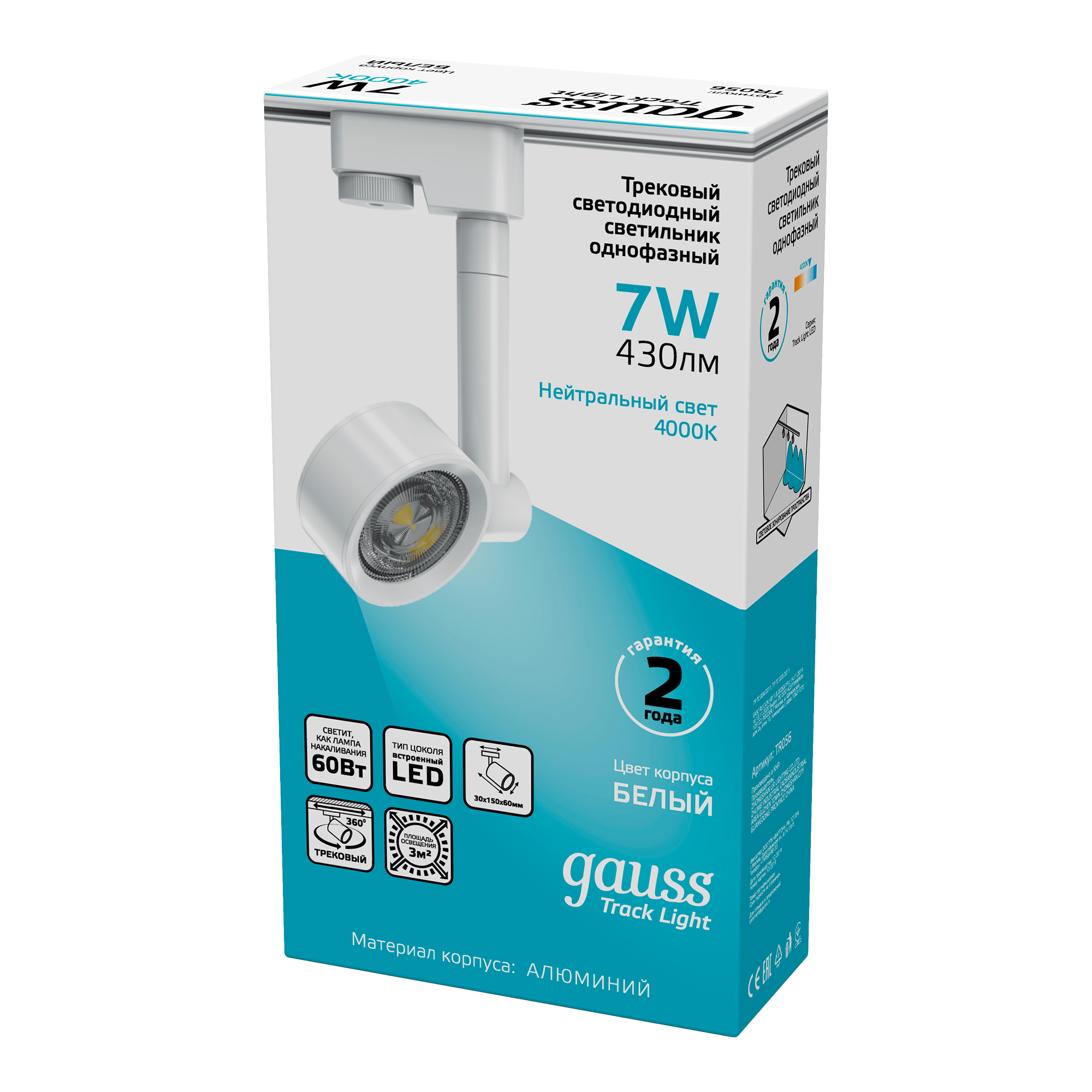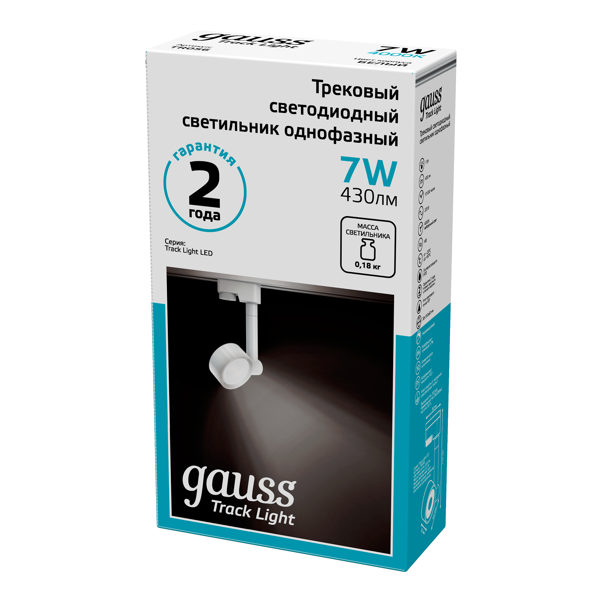 Трековый светильник светодиодный Gauss 7 Вт 3 м² цвет белый Track Light