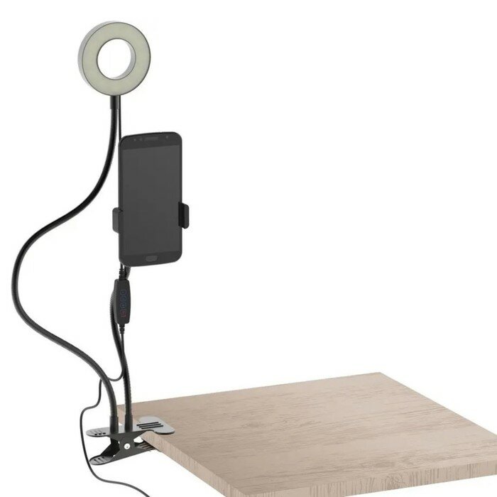 | Особенности | регулировка наклона лампы, регулировка поворота лампы, держатель на гибкой ножке, держатель с прищепкой к столу, регулировка поворота держателя смартфона, гибкая стойка, держатель для смартфона (до 80 мм) |