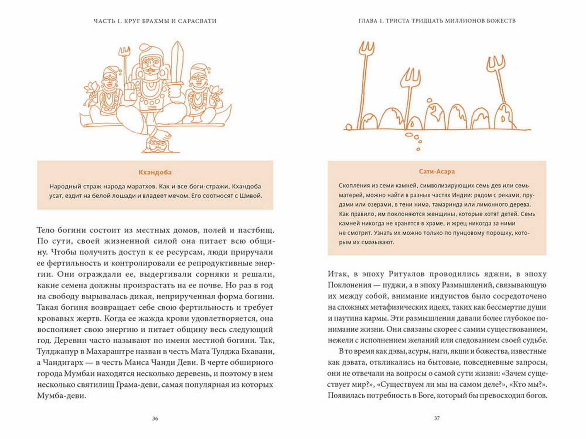 Индийский специалист по мифологии Девдатт Паттанаик пересказывает сюжеты из Вед, упанишад, Махабхараты и других важнейших текстов индуизма как захватывающие истории. Доступные объяснения и оригинальные иллюстрации оживляют этот удивительный мир и помогают понять самые сложные концепции. Вы узнаете о главных божествах, духах и демонах, а также о том, что в действительности представляют собой понятия кармы, йоги, тантры, дхармы и сансары. Эта книга станет идеальной отправной точкой для каждого, кто хочет постичь индийскую культуру. На русском языке публикуется впервые.