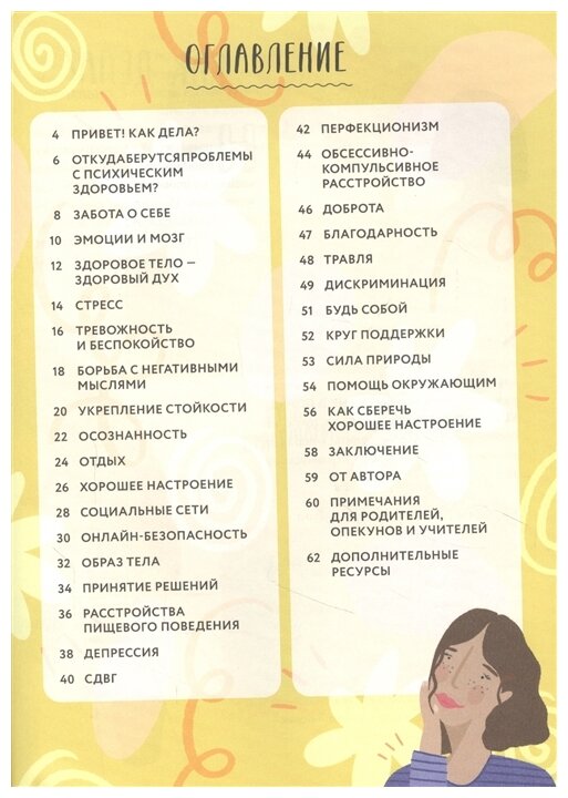 — Как твои дела? — Я в порядке! Что на самом деле может скрываться за ответом на самый обычный вопрос? Легко ли говорить и признавать, что ты «не в порядке»? Эта книга клинического психолога с 30-летним опытом расскажет не только о том, что быть не в порядке — совершенно нормально, но и научит искать выходы из сложных ситуаций и помогать себе в таком сложном и быстро меняющемся мире. Есть темы, на которые говорить не принято, а зря. Негативные мысли, стресс, буллинг могут встретиться в жизни любого человека, а бывают еще депрессия, тревожность, расстройства пищевого поведения... Порой подростку может показаться, что только он сталкивается с такими проблемами, а еще, что жаловаться на жизнь — плохо. Но это совсем не так! Куда хуже остаться со своими проблемами один на один. Подросток станет намного защищеннее, если научится понимать себя и свои состояния, поймет, почему они возникают и как себе помочь. Если у ребенка все в порядке, книга поможет ему лучше понимать сверстников, бережнее относиться к себе и окружающим и овладеть инструментами самопомощи, поддержания хорошего самочувствия и уверенности в себе. Подросток узнает, как распознать стресс, тревожность, негативные мысли, расстройство пищевого поведения, депрессию, СДВГ, перфекционизм, буллинг. И как помочь себе при помощи стойкости, осознанности, отдыха, заботы о себе, поддержки близких, добрых дел. А еще читатели найдут советы для родителей на все случаи жизни, адреса полезных ресурсов и контакты организаций, в которые можно и нужно обращаться, если вдруг что-то случится.