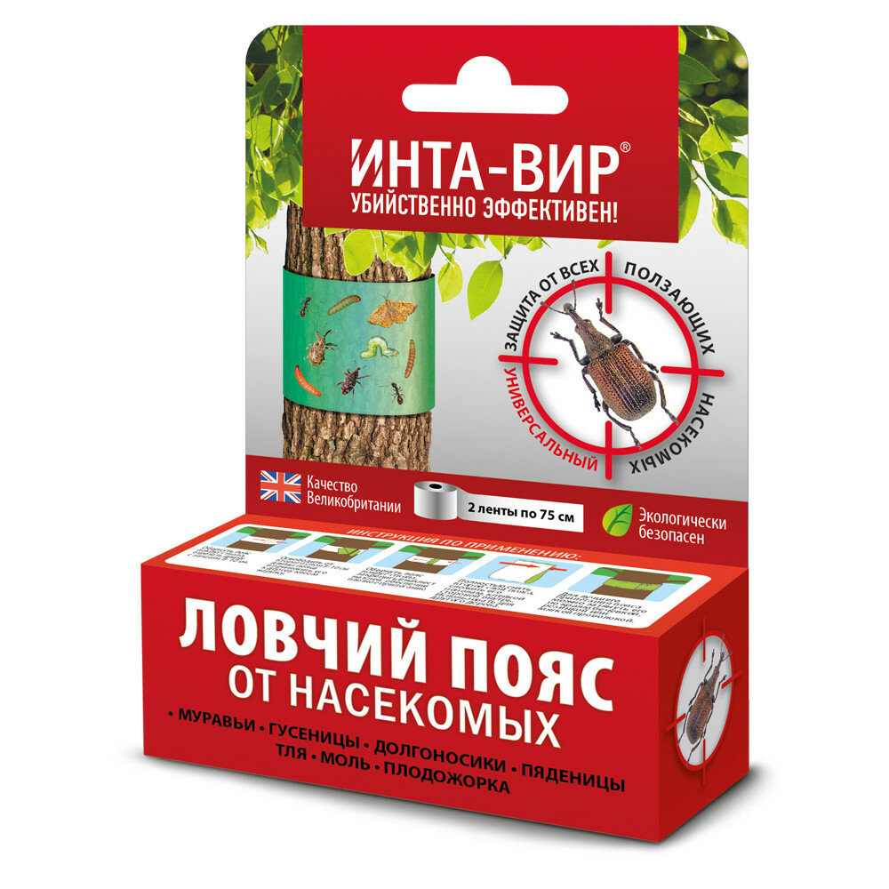 Клейкий ловчий пояс ИНТА-ВИР представляет собой липкую ленту, которая в виде пояса крепится на ствол дерева. Применяется для защиты плодовых и декоративных деревьев, а также кустарников от ползающих насекомых-вредителей.