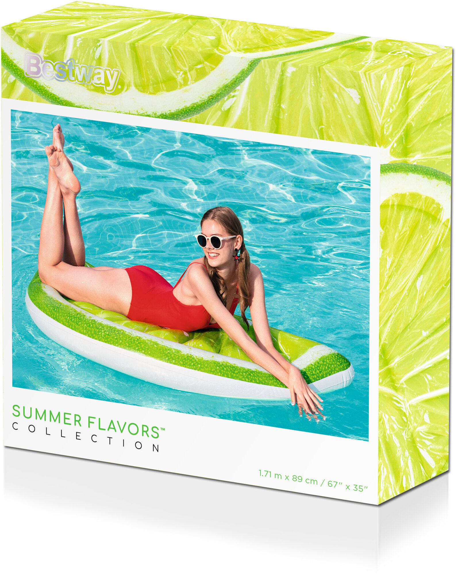 Получите сладкий вкус тропиков с помощью матраса для плавания Bestway Тропический лайм! Яркий, запоминающийся дизайн отлично подойдет к лайму в вашем напитке. В следующий раз, когда вы будете у бассейна, озера или на пляже, плавающий матрас Bestway Тропический лайм непременно произведёт фурор.