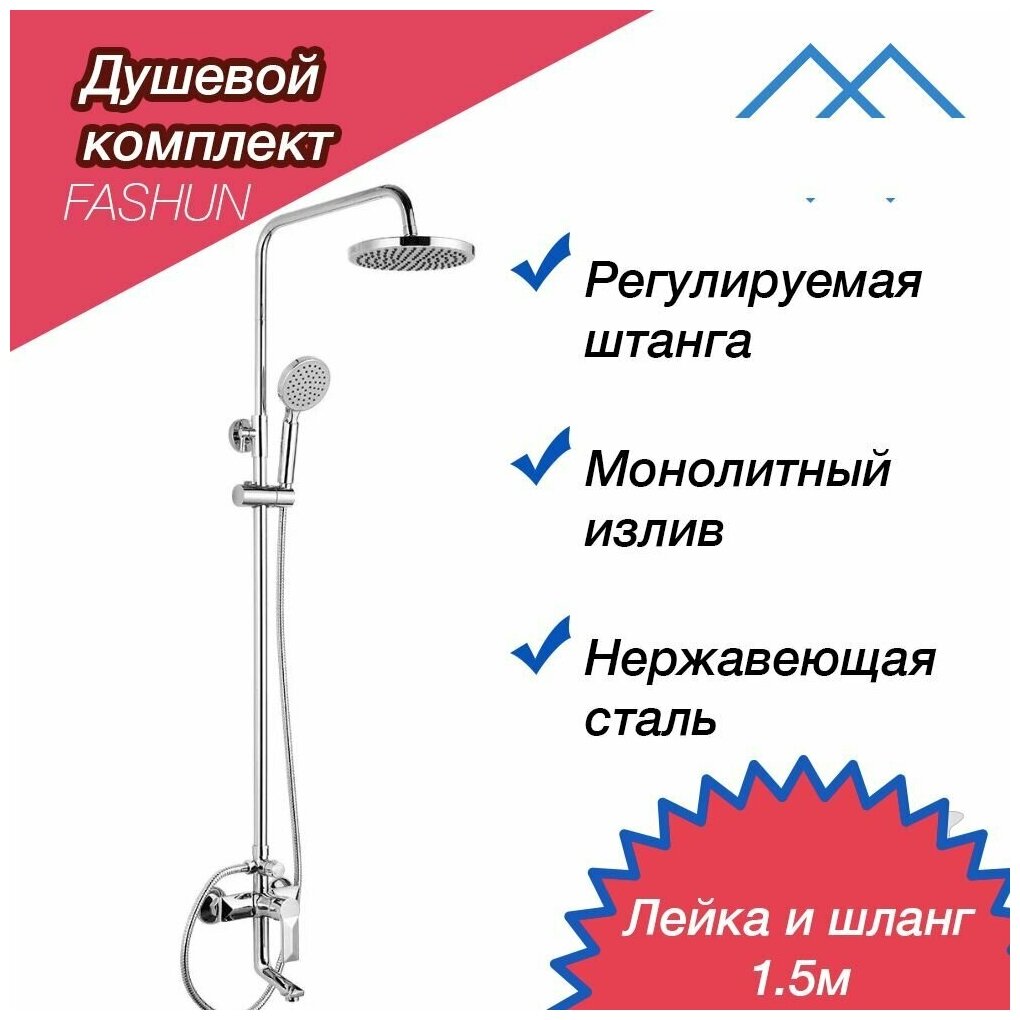 Душевая стойка Fashun A2418 хром бесподобно дополнит вашу ванную комнату своим незаменимым функционалом. Душевые стойки Fashun просты в установке и обладают полным набором функций. Высота душевой штанги у Fashun 139 см, позволит регулировать высоту размещения лейки в широком диапазоне. Душ Fashun A2418 имеет 1 режим настройки потока струи. Материал шланга металлический отлично препятствует скручиванию, и долгое время не теряет свои свойства. Диаметр верхнего (тропического) душа, которым оснащен A2418 составляет 20 см.