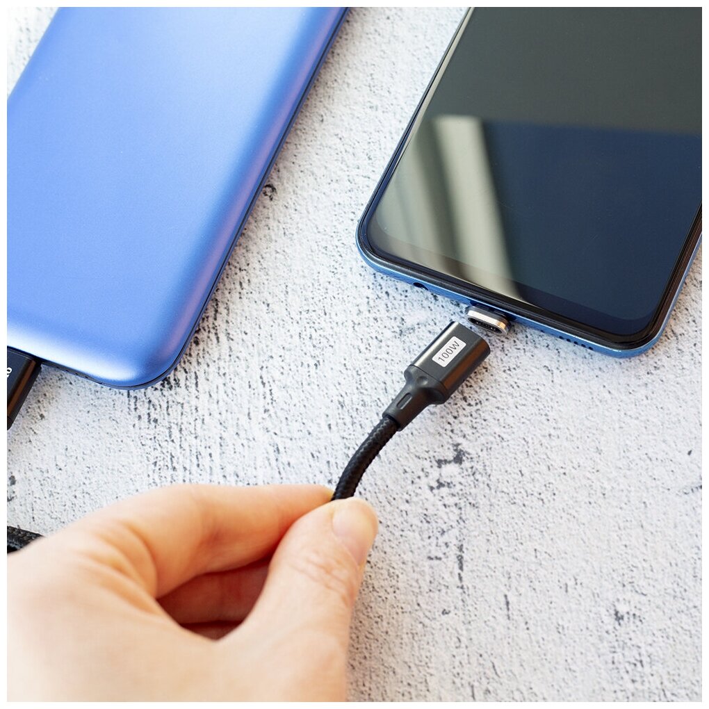 В современных устройствах зачастую реализована защита от влаги и пыли. Многие смартфоны поддерживают беспроводную зарядку. Однако, если Ваше устройство не поддерживает зарядку по технологии Qi, то наш новый кабель Olmio PD100 MagCable специально для Вас. Его длина составляет 1.5 метра, чего хватит для того, чтобы не «жить у розетки», сам же кабель защищен оплёткой, штекеры выполнены из металла. Сильные неодимовые магниты надежно крепят кабель к коннектору. Благодаря надежной конструкции, энергия передается из сети к устройству практически без потерь. Специальный чип E-Mark в конструкции кабеля позволяет достигнуть мощность в 100W. Обращаем Ваше внимание, что без этого чипа достигнуть 100 ватт в технологии PowerDelivery невозможно
