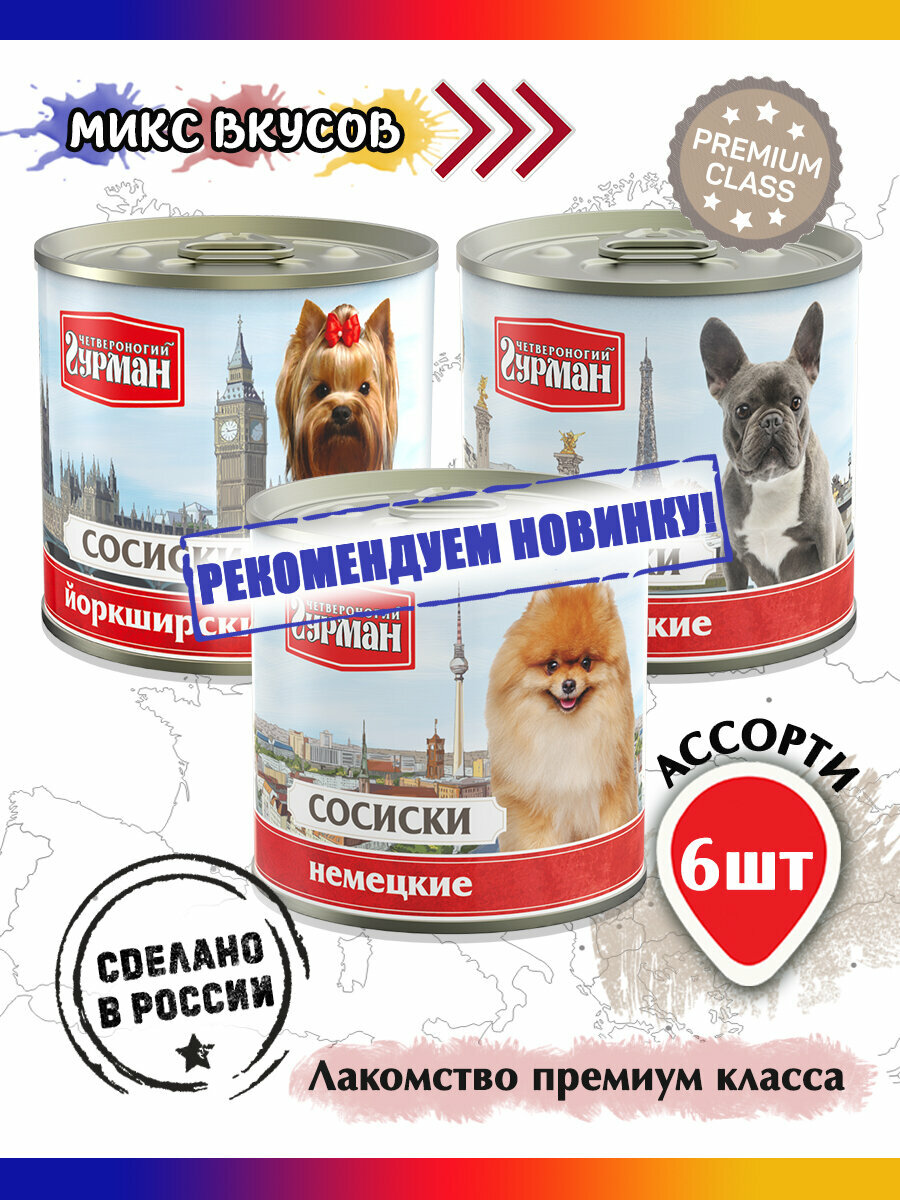 Сервис сравнения цен СкидкаГИД предлагает сравнить цены на товар «Влажный корм для собак Четвероногий Гурман Сосиски Французские 024 кг ЧЕТВЕРОНОГИЙ ГУРМАН СОСИСКИ ФРАНЦУЗСКИЕ для взрослых собак (240 гр)»