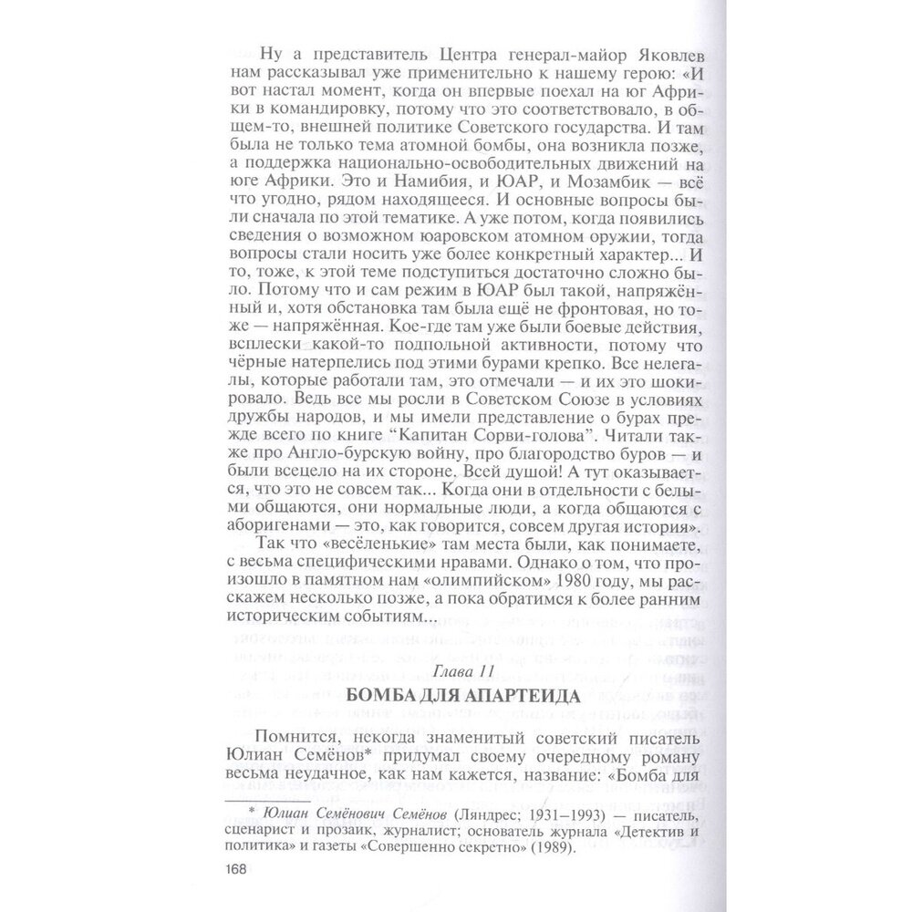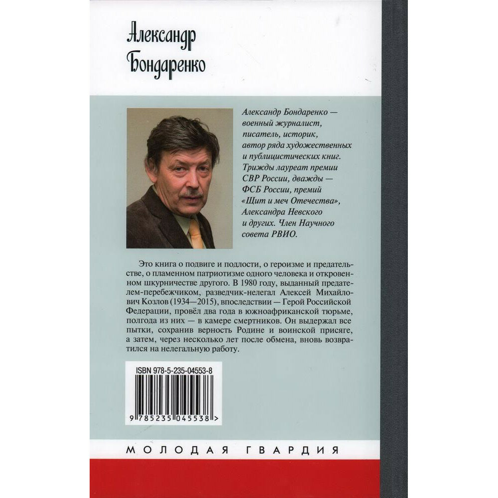 Из всей ярчайшей биографии разведчика-нелегала Героя Российской Федерации Алексея Михайловича Козлова (1934–2015) рассекречен всего лишь один период: в конце 1970-х годов он сумел получить информацию о тайном создании в Южно-Африканской Республике ядерного оружия. В 1980 году, из-за предательства, разведчик оказался в юаровской тюрьме, где ему прошлось пройти через нечеловеческие испытания — но он не сломился, не сдался. Более того, возвратившись после обмена на Родину, Алексей Михайлович вскоре вновь был направлен на нелегальную работу за границу, что стало случаем воистину уникальным: в любой разведке карьера «провалившегося» разведчика заканчивается. В книге впервые достаточно подробно рассказывается и о других страницах биографии легендарного разведчика, а также – о том человеке, который его предал, изменив воинской присяге и своему Отечеству.