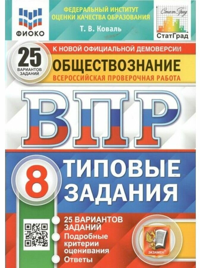 Обществознание Всероссийская проверочная работа 8 класс Типовые задания 25 вариантов заданий Подробные критерии оценивания (Коваль Татьяна Викторовна); Экзамен, 2023