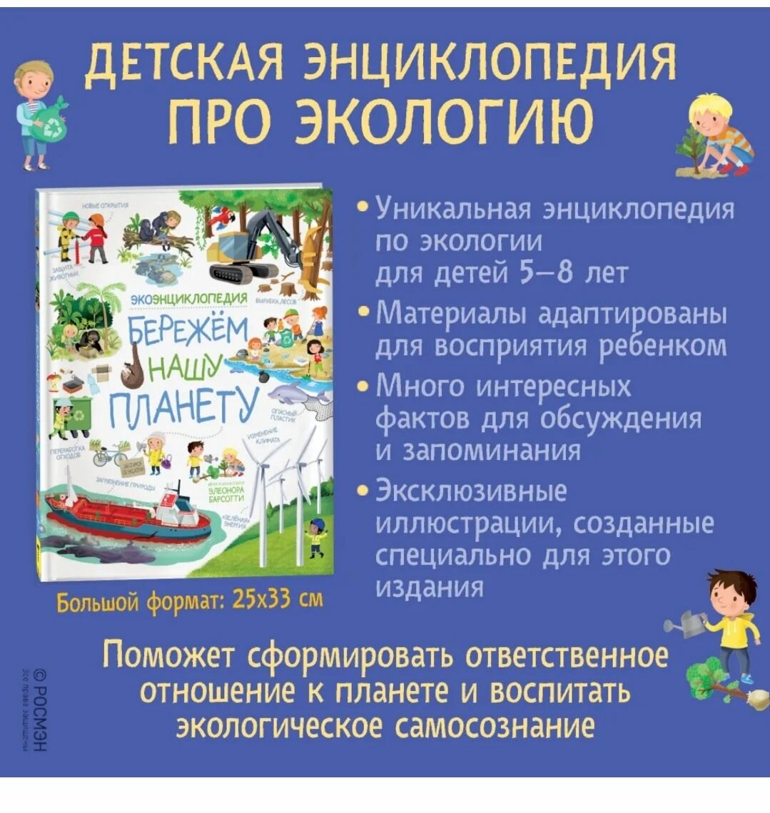 Детская энциклопедия на одну из самых актуальных тем - экологию, объединяющая материал об устройстве Земли с советами, как можно помочь нашей планете. Прекрасные иллюстрации, выполненные в стиле виммельбуха, настолько красочные и детализированные, что каждый разворот можно рассматривать бесконечно.Материал адаптирован для детей, и даже сложные темы преподнесены наглядно и понятноКнига для неравнодушных родителей, которые хотят рассказать ребенку о нашей планете, вдохновить на дальнейшее изучение природы и бережное отношение к окружающему миру; Книга-подарок для детей, которые уже скоро сами будут создавать новые технологии, открывать источники энергии и изменять мир к лучшему.