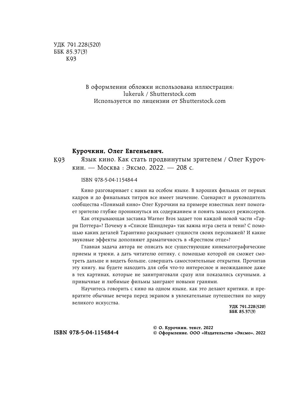 Язык кино. Как стать продвинутым зрителем (Курочкин Олег Евгеньевич); ООО "Издательство "Эксмо", 2022