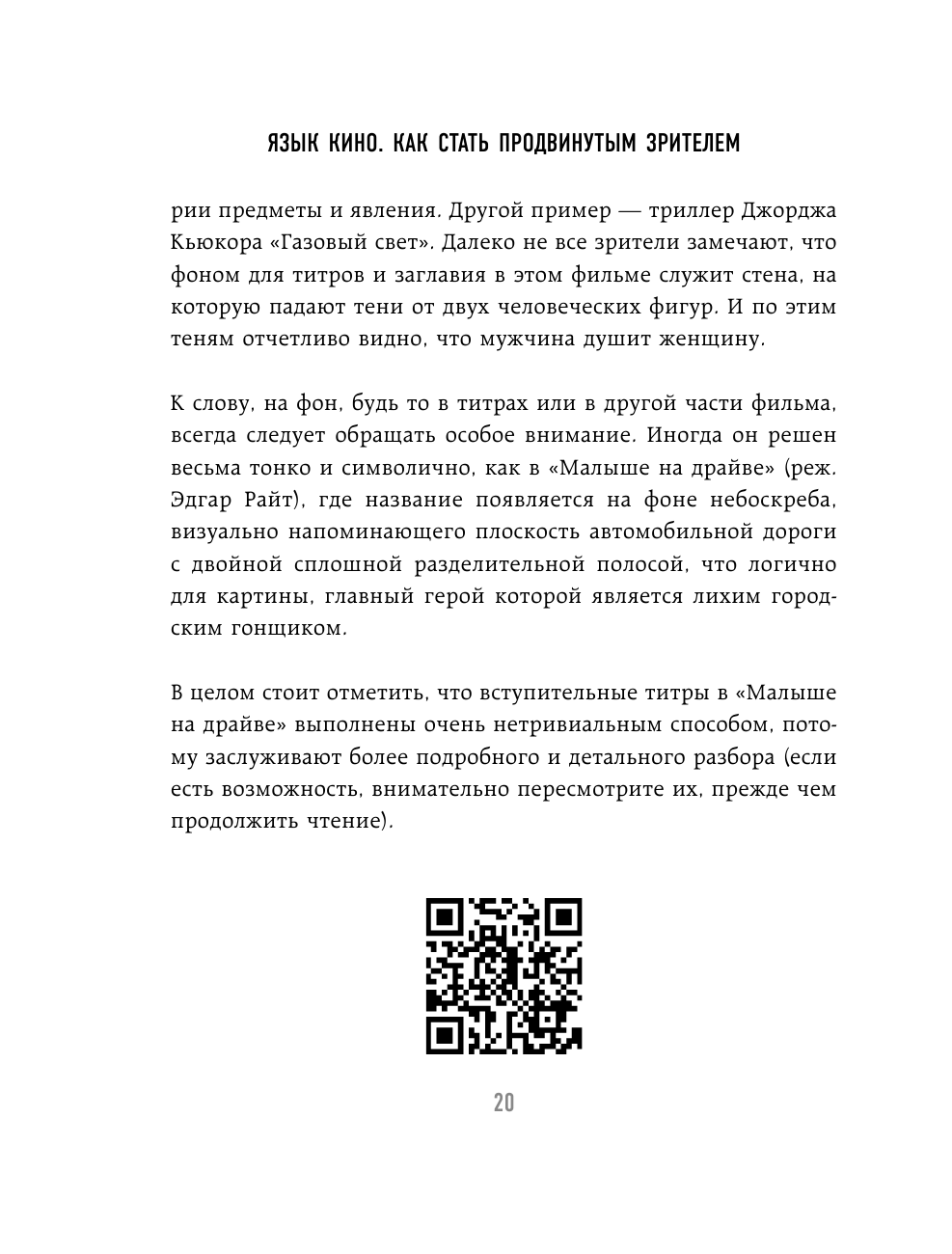 Книга очень удобного формата, с ней будет комфортно выискивать отсылки в фильмах, о которых говорится в тексте, так как книга лёгкая и хорошо помещается в руках. Текст сопровождается ч/б иллюстрациями и qr-кодами, хотя я ещё их не тестировала.