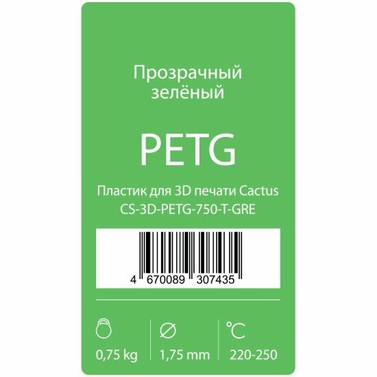 Пластик для принтера 3D Cactus CS-3D-PETG-750-T-GRE