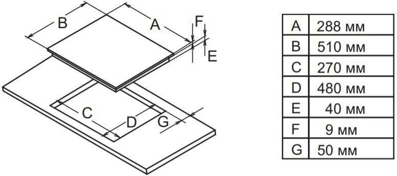 | Размеры ниши для встраивания (ШxГ) | 270 х 480 мм |