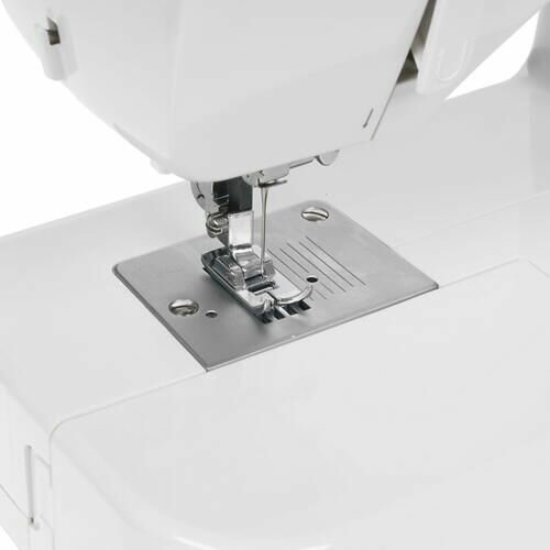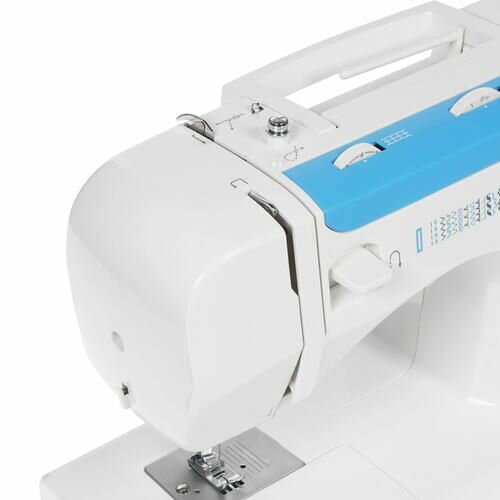 Электромеханическая швейная машина JAGUAR выполнена в приятной бело-голубой цветовой гамме, проста в эксплуатации и оптимально подойдет для ремонта и пошива одежды. Модель может выполнять 23 различные швейные операции, включая оверлочные, эластичные, обметочные, трикотажные, декоративные и потайные строчки. Выполнение петель происходит в автоматическом режиме. Благодаря нитевдевателю вам не придется напрягать зрение, чтобы вставить нитку в иглу, а нитеобрезатель поможет обойтись без ножниц. Для подачи ткани в обратном направлении вы можете воспользоваться клавишей реверса, а снятие свободного рукава даст возможность выполнять кропотливую работу и изготавливать декоративные рисунки. Швейная машина JAGUAR имеет отсек для хранения различных швейных приборов, игл, лапок, шпулек. Для людей со слабым зрением или при работе в слабоосвещенном помещении можно воспользоваться LED-подсветкой.