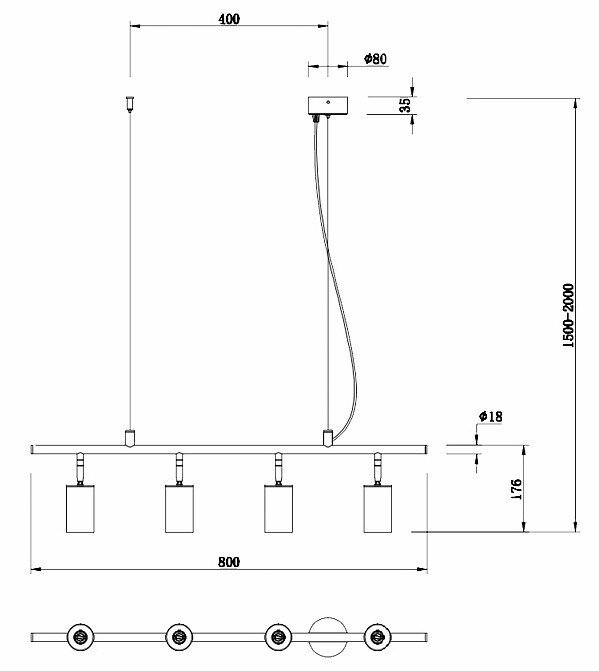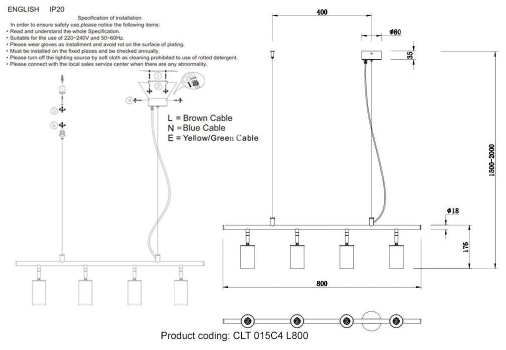 Подвесной светильник Crystal Lux CLT 015C4 L800 BL.
