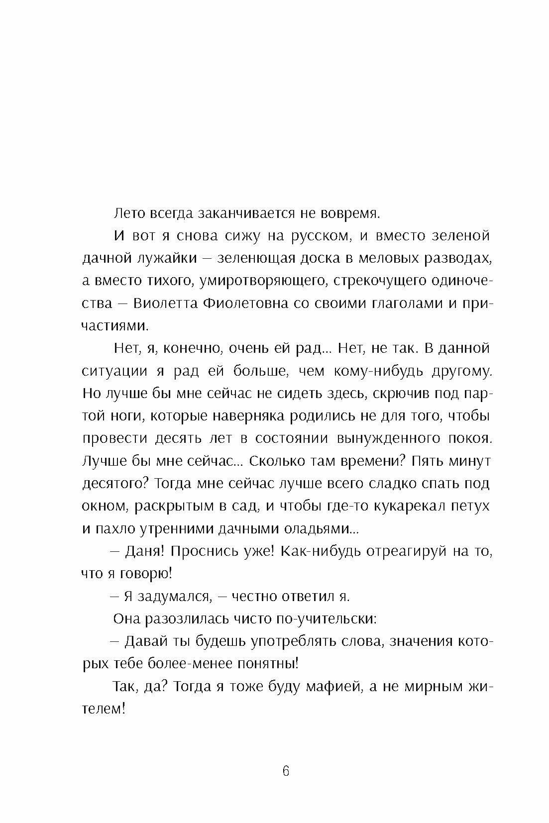 Лето прошло, Даня уже десятиклассник, а ошибки по-прежнему с ним. Конечно, не все двадцать восемь, но временами слова и буквы еще путаются и слипаются в голове, как пельмени… А значит, индивидуальные занятия - муха Эмма не в счет! - с проницательной и остроумной Виолеттой Фиолетовной продолжаются.