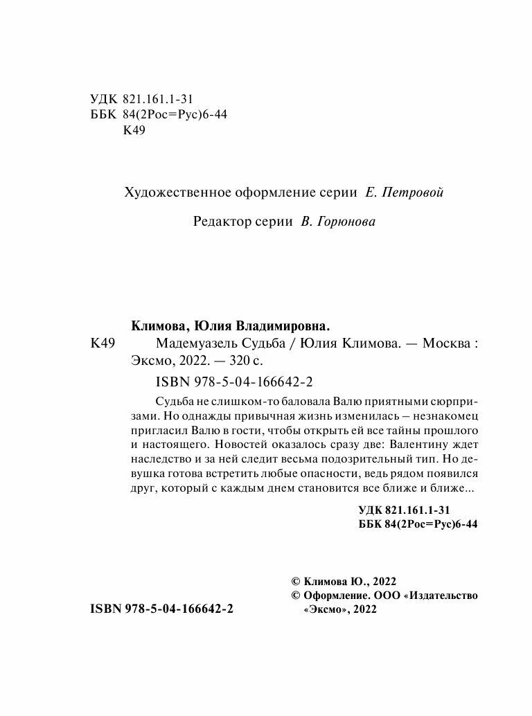 Книга: Мадемуазель Судьба (Климова Юлия Владимировна); ООО "Издательство "Эксмо", 2022
