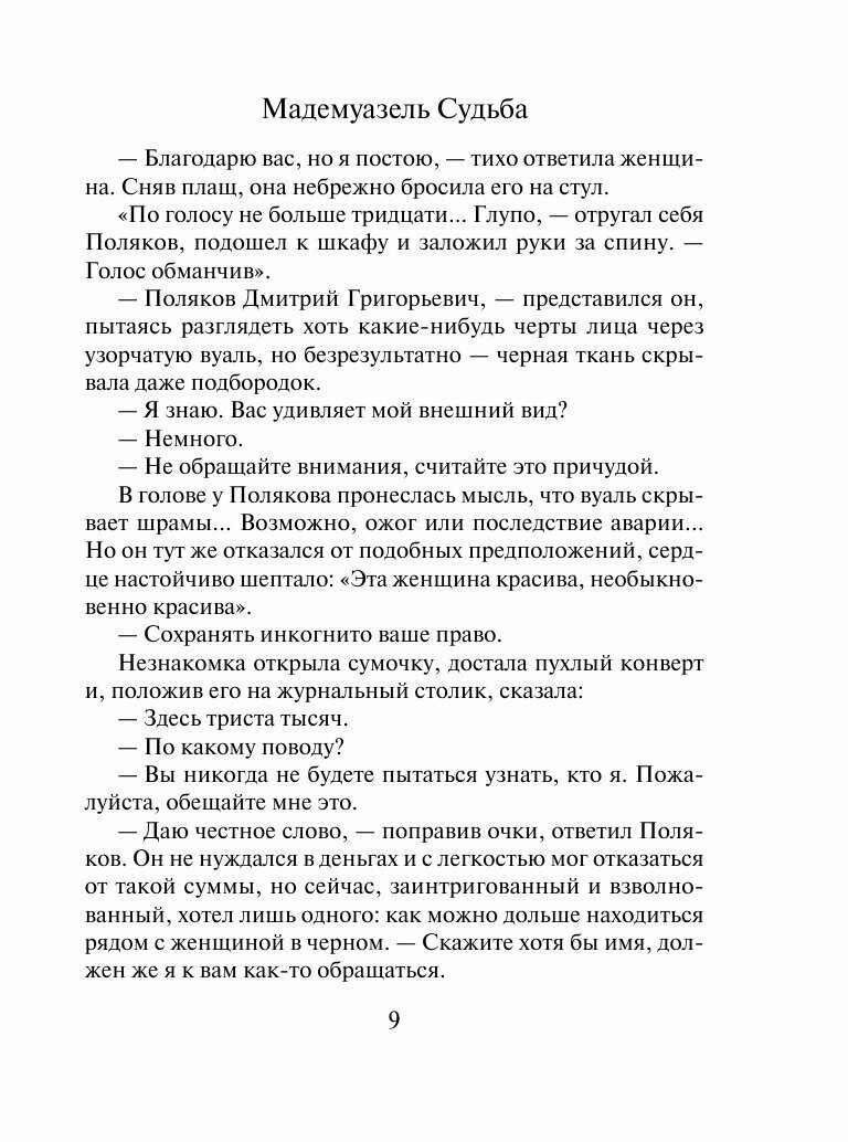 В романе "Мадмуазель судьба" главная героиня Валентина думала, что после смерти родителей, она осталась совсем одна - без родственников. Каково же было ее удивление, что ей оставила довольно большое наследство умершая дальняя родственница, но не все так просто. Чтобы стать счастливой Валентине нужно многое пережить, понять и разобраться.