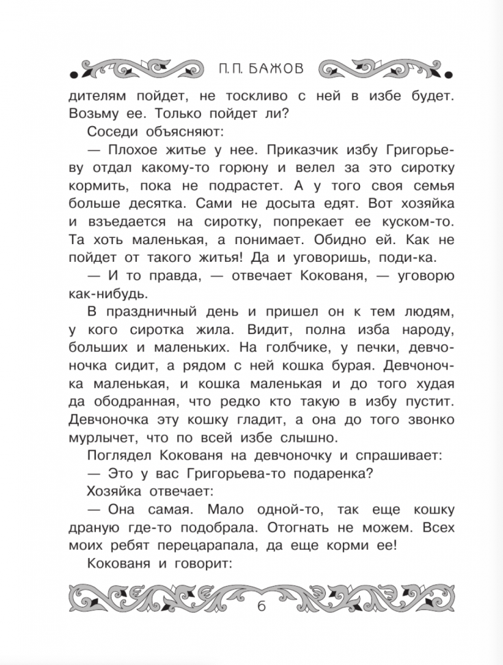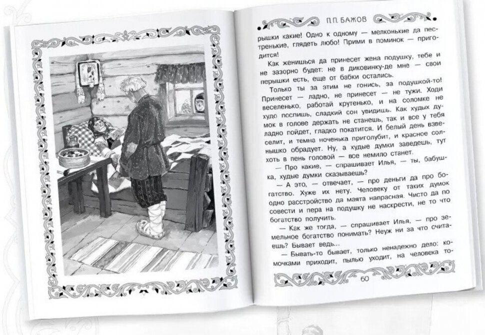 Купите это издание детям для "второго" прочтения. Если для первого ознакомления хватает 4-10 сказов, то здесь их уже 23. Есть картинки, правда чёрно-белые. Ещё предоставлено отличное качество, твëрдый переплëт, белые листы и, конечно, содержание. В любом возрасте нужно обязательно читать сказы Бажова. Они очень самобытные, мудрые и наполнены глубоким смыслом, развивают в человеке самые лучшие качества, такие, как трудолюбие, милосердие, любовь к природе. Книга очень хорошая и добрая. В ней красота Урала переплетена с красотой человеческой души, украшена чудесами. Удивительные образы реальных людей, стойкость и мужество характеров против корысти и жестокости. Творения Павла Бажова считаю уникальным явлением в русской культуре, и самое главное – это тëплые воспоминания детства, и не только у детей Урала.