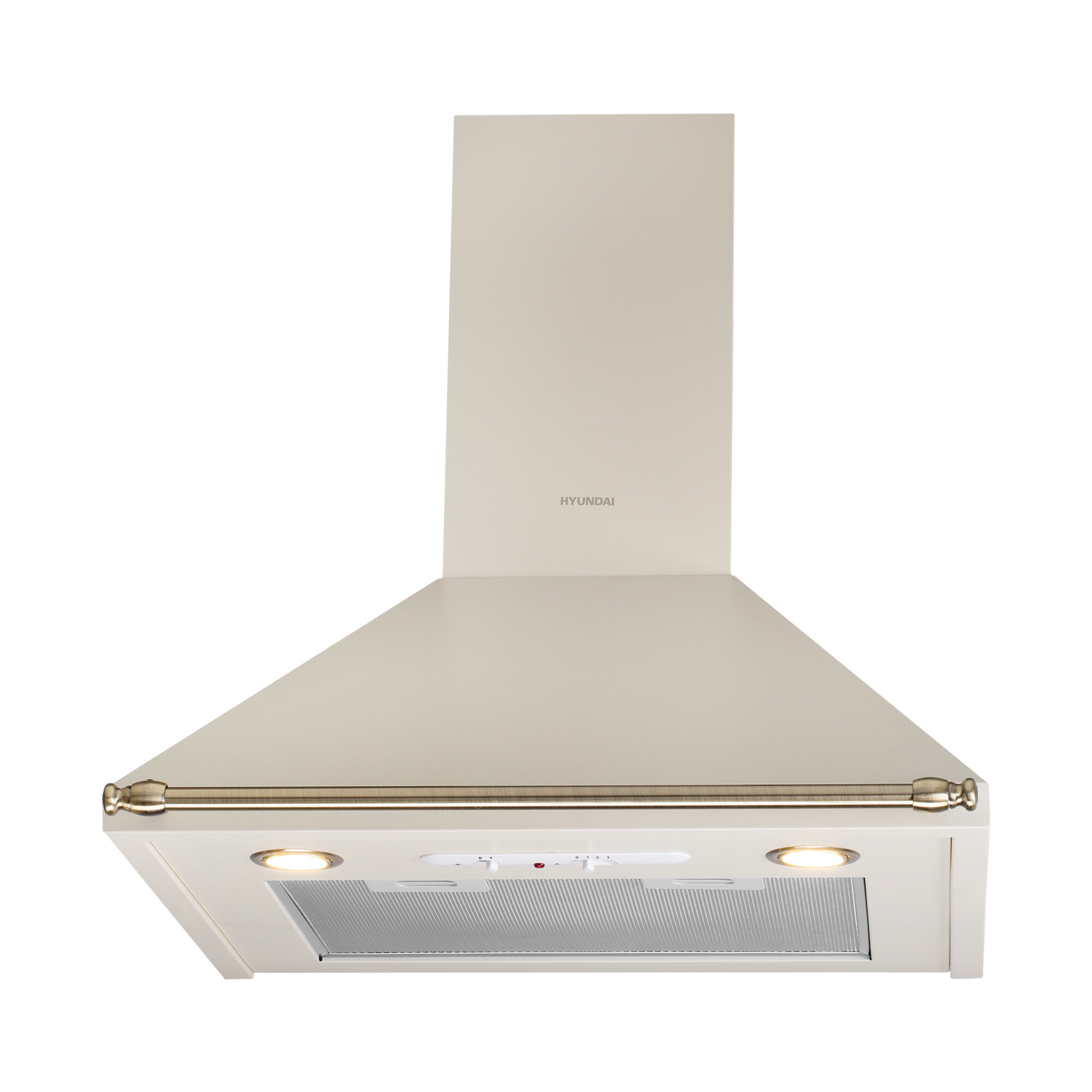 Каминная вытяжка Hyundai бежевый, количество двигателей 1, режим работы отвод/циркуляция, ползунковое управление, алюминиевый жироулавливающий фильтр