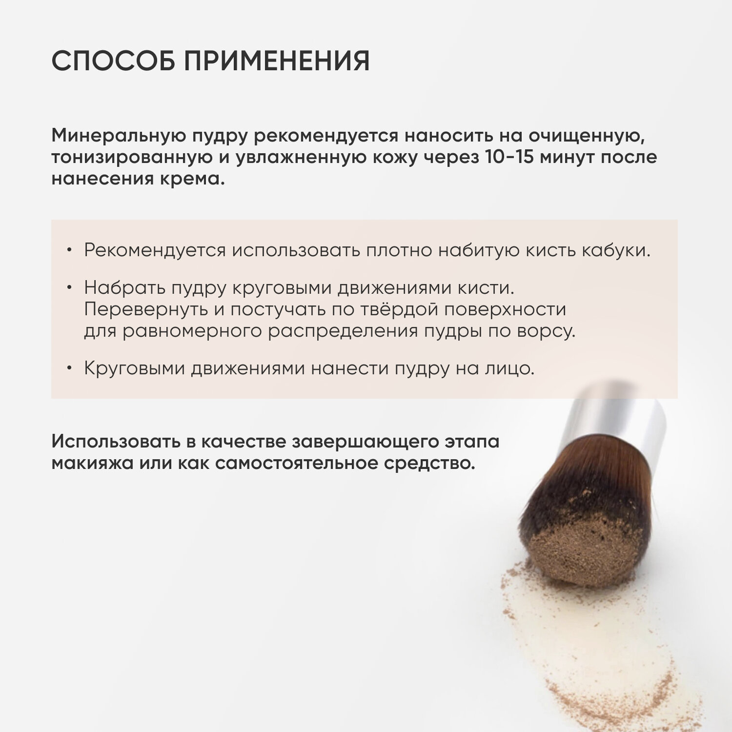 Минеральную BB-пудру рекомендуется наносить на очищенную, тонизированную и увлажненную кожу через 10-15 минут после нанесения крема.
