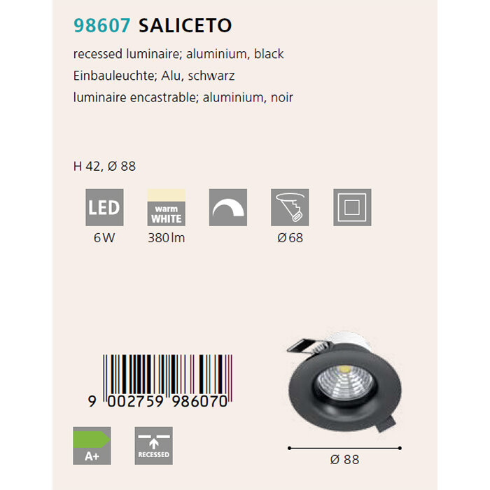 Сервис сравнения цен СкидкаГИД предлагает сравнить цены на товар «Встраиваемый Светильник Eglo SALICETO 98607»