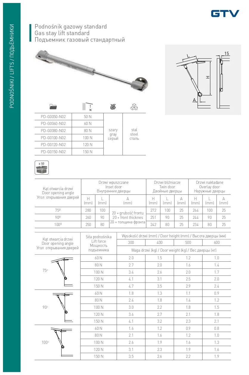 В качестве основного параметра газлифта также может быть указана сила сжатия, измеряемая в Ньютонах (N). 1 кг примерно соответствует 10N. Для комфортной и долговечной эксплуатации рекомендуется устанавливать два газлифта на один фасад.