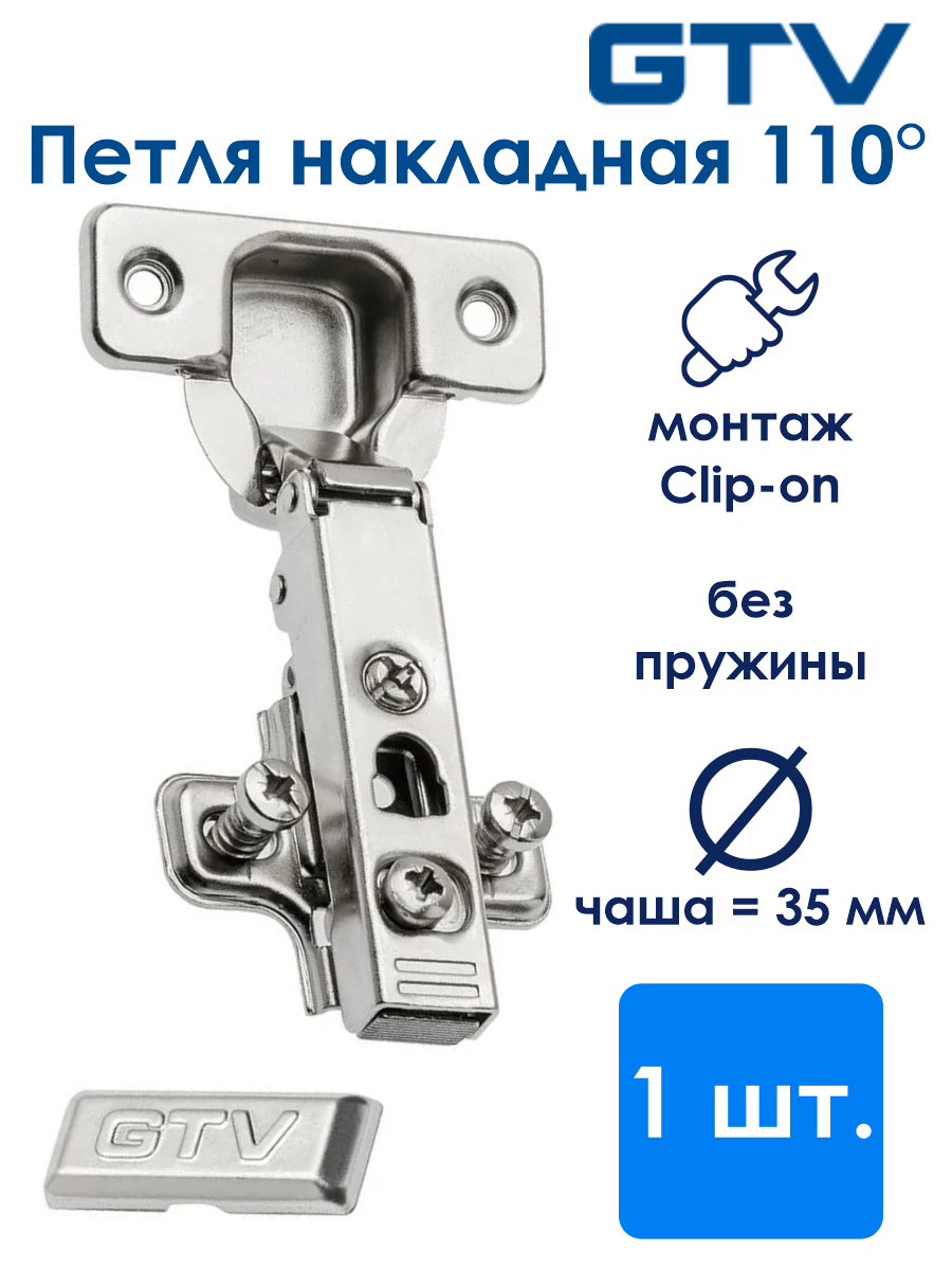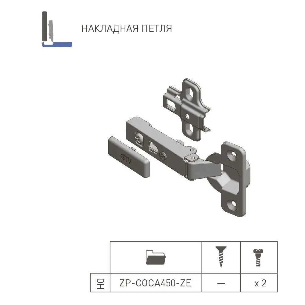 Петля накладная GTV ZP-COCA450-ZE клиповая без пружины H-0 45мм с евро