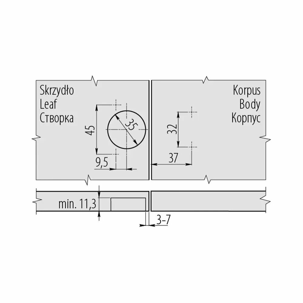 | Состав комплекта | Петля, ответная планка, маскировочная накладка, 2 еврошурупа |