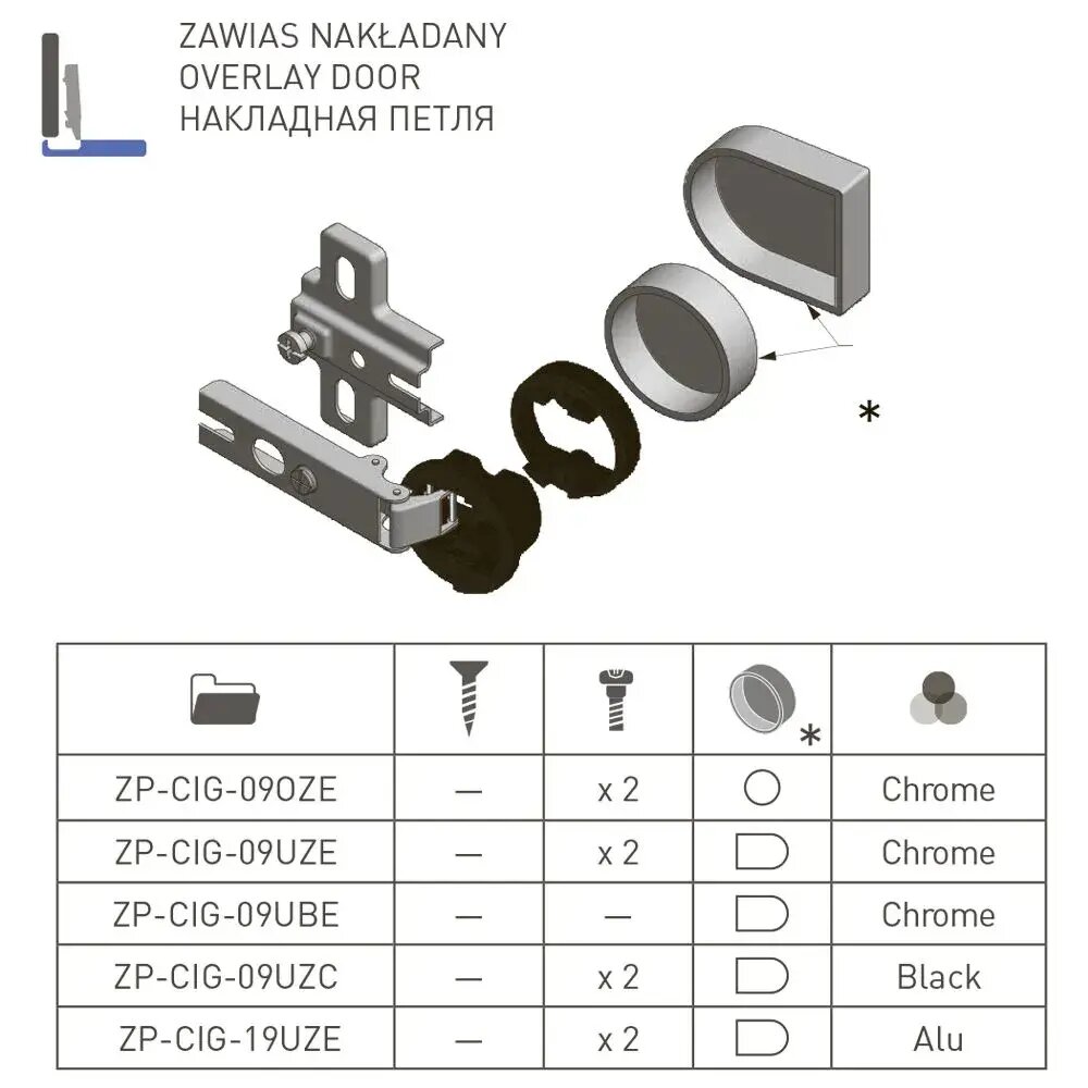 | Состав комплекта | Петля, ответная планка, декоративная заглушка, 2 еврошурупа |