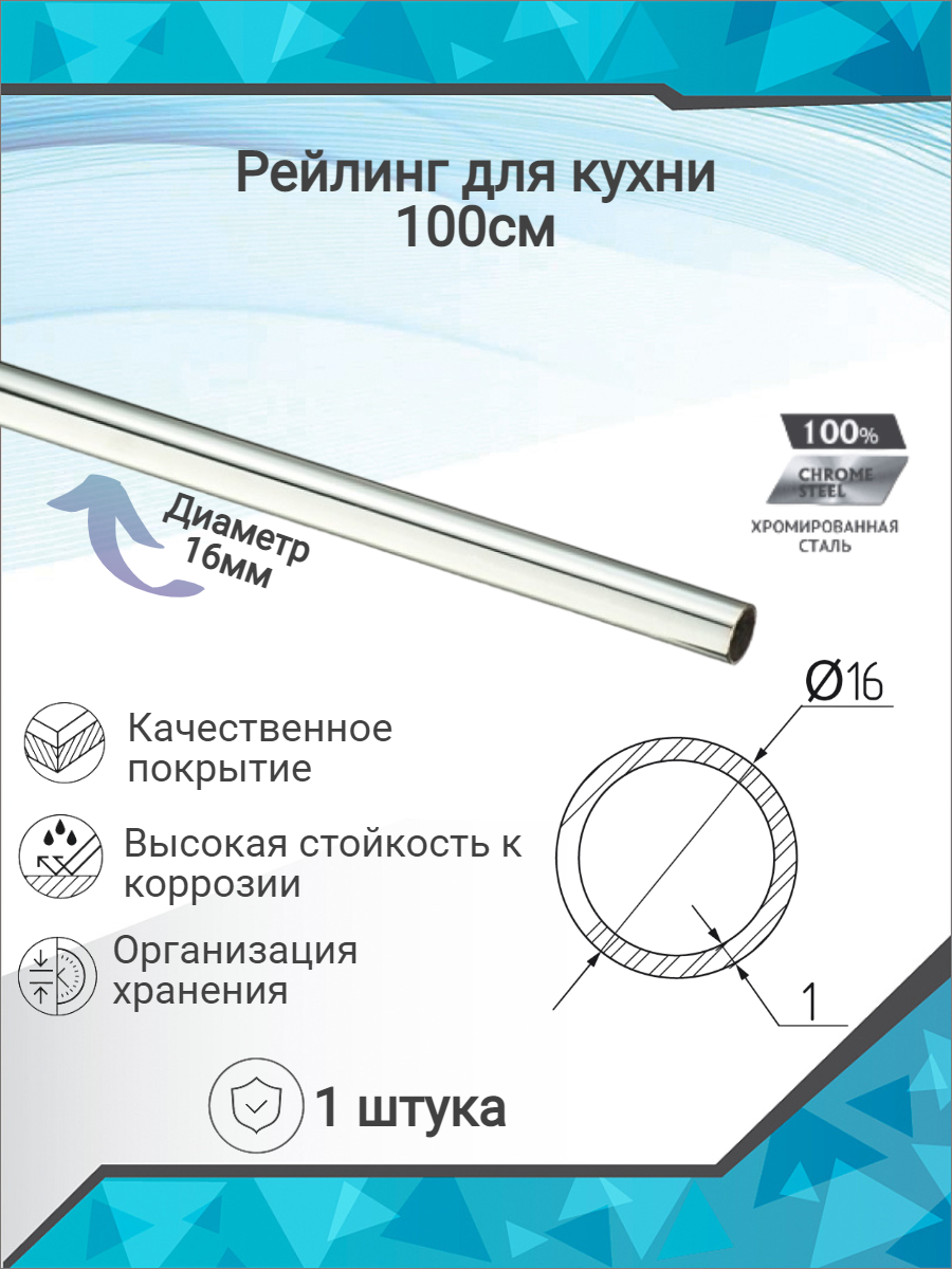 Рейлинговая труба 800 мм (штанга, горизонтально прикрепляемая к стене на кухне) - 1 шт.