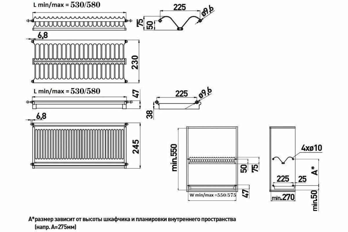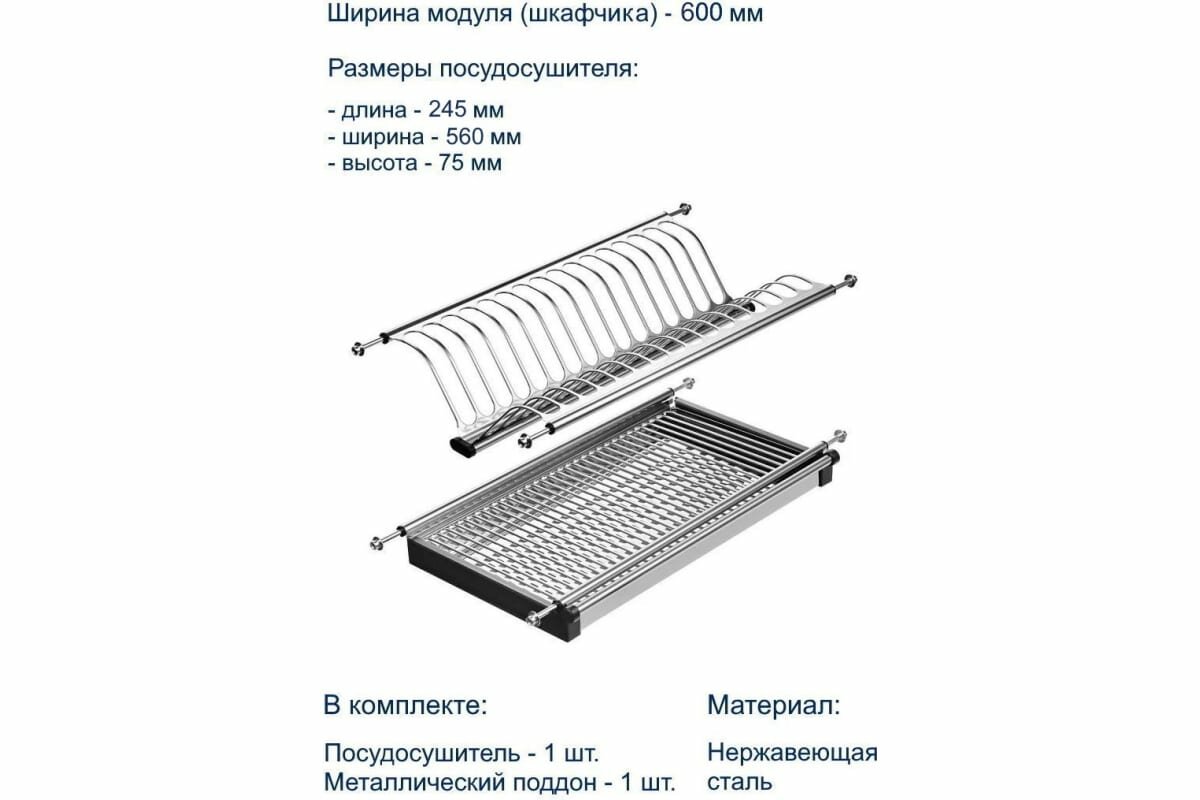 Посудосушитель предназначен для установки в модуль 600 мм. Возможна регулировка по ширине при монтаже.
