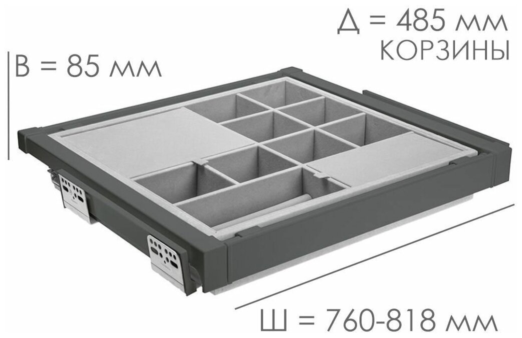 Корзина с органайзером WG-PRZEG80-60 в модуль 800 мм графит с доводчиком полного выдвижения GTV